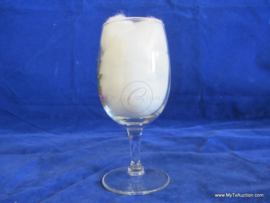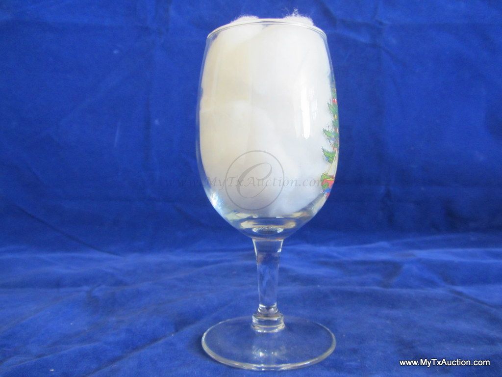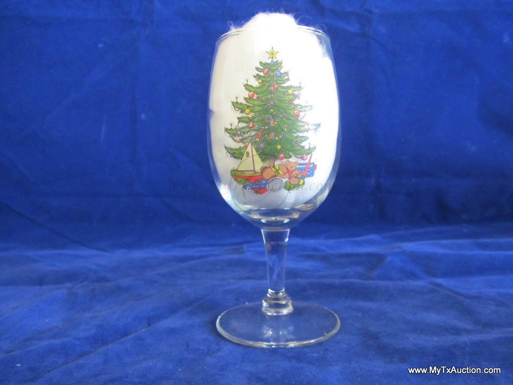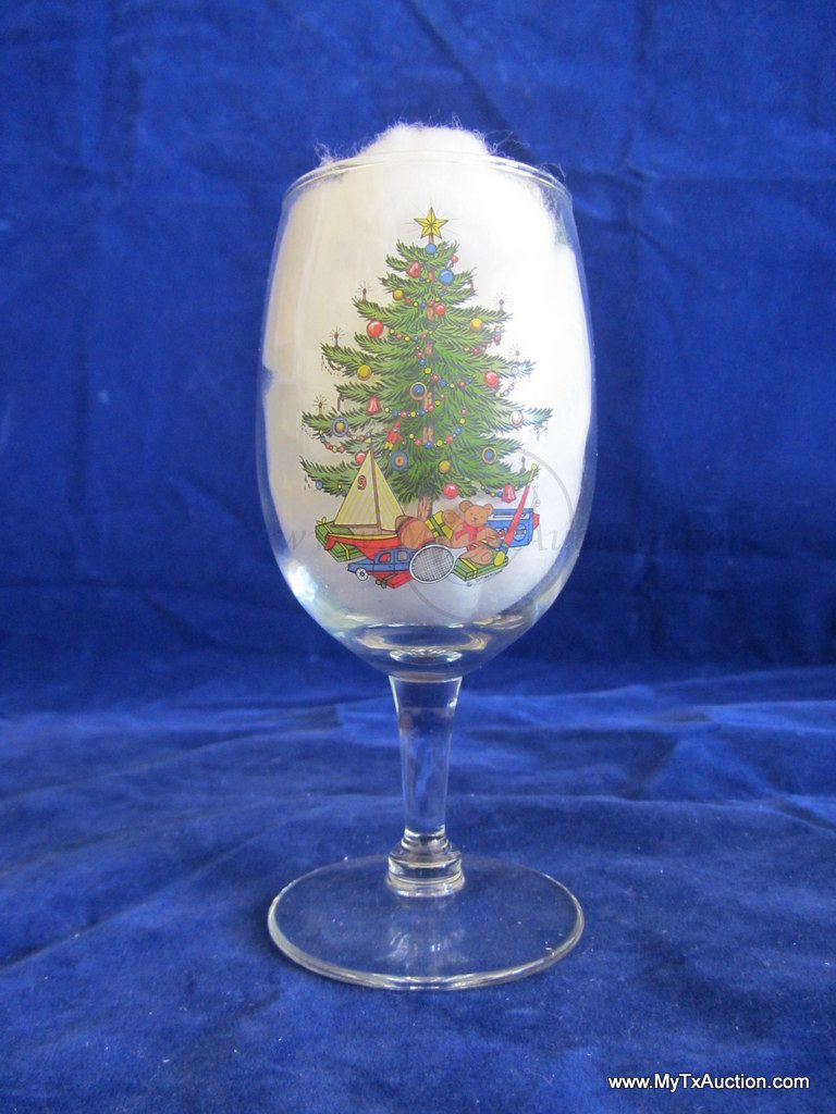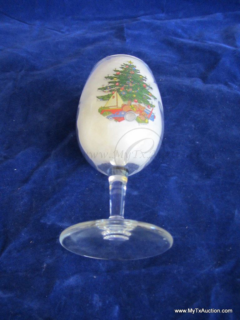 Small wine glass with the Cuthbertson sailboat Christmas tree design. Stands