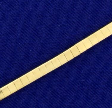 In 14k yellow gold, 7 3/8" long and 3mm wide with safety clasp. 6.4g.