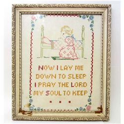 reads "Now I lay me down to sleep I pray the lord my soul to keep." Measures approx 11-1/2" x 13-1/3".