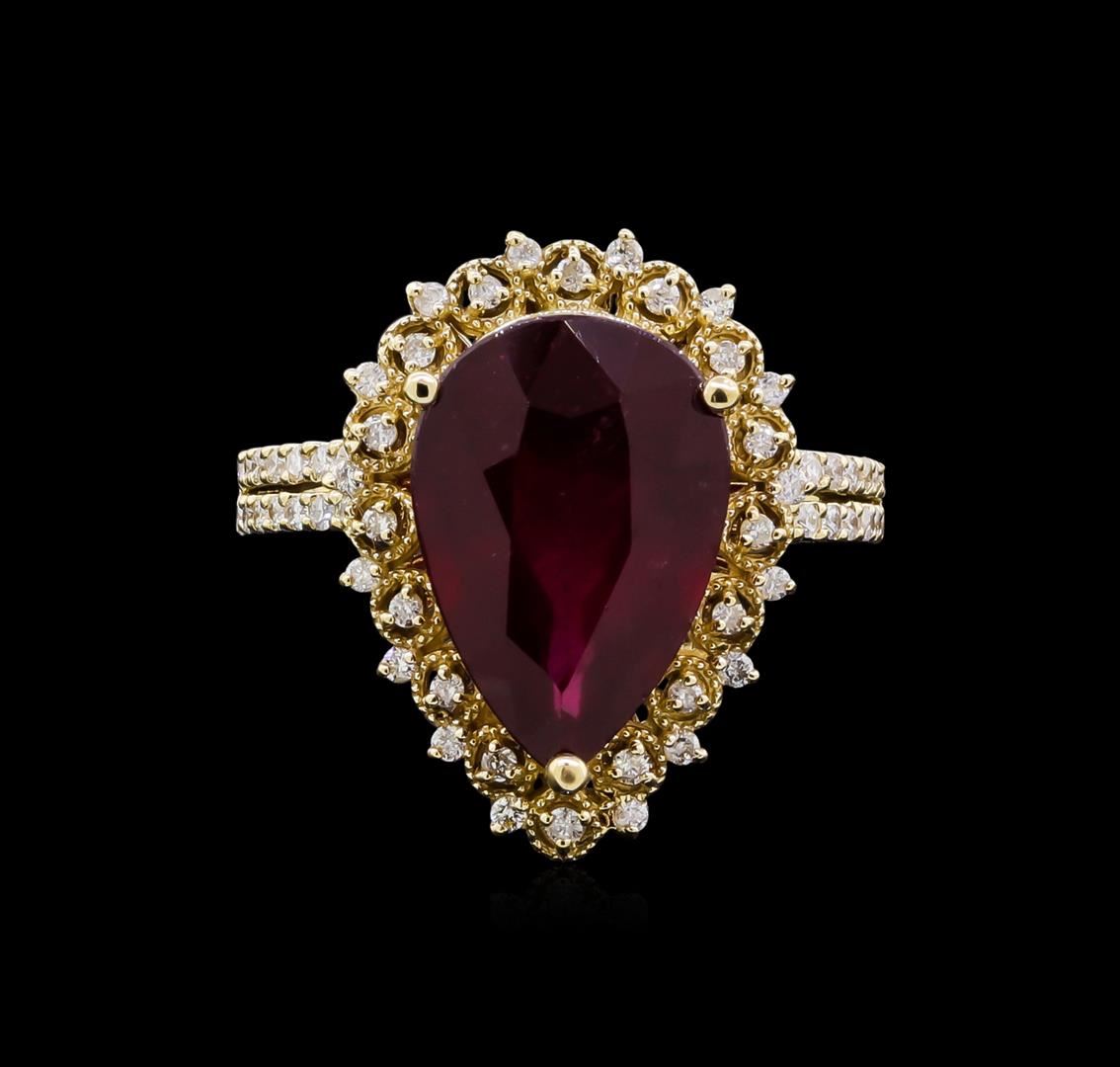 One ring featuring: 14KT yellow gold weighing 5.53 grams containing one ruby with a total weight of 7.30ct and side diamonds with a total weight of 0.40ct.