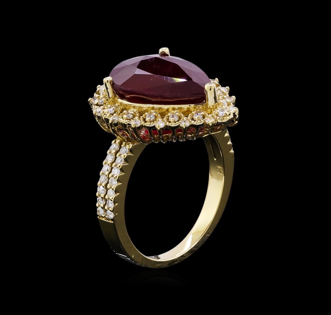 One ring featuring: 14KT yellow gold weighing 5.53 grams containing one ruby with a total weight of 7.30ct and side diamonds with a total weight of 0.40ct.