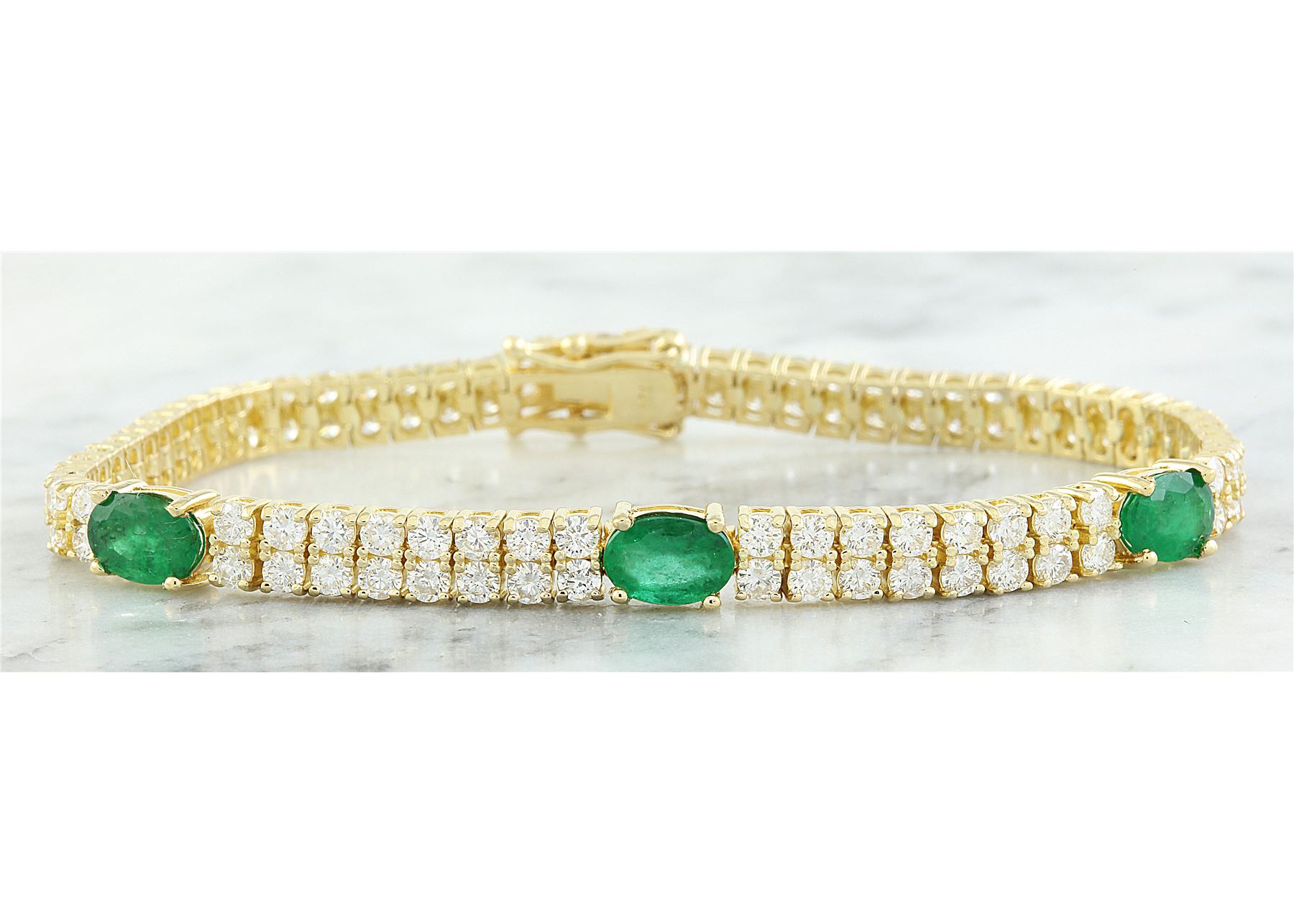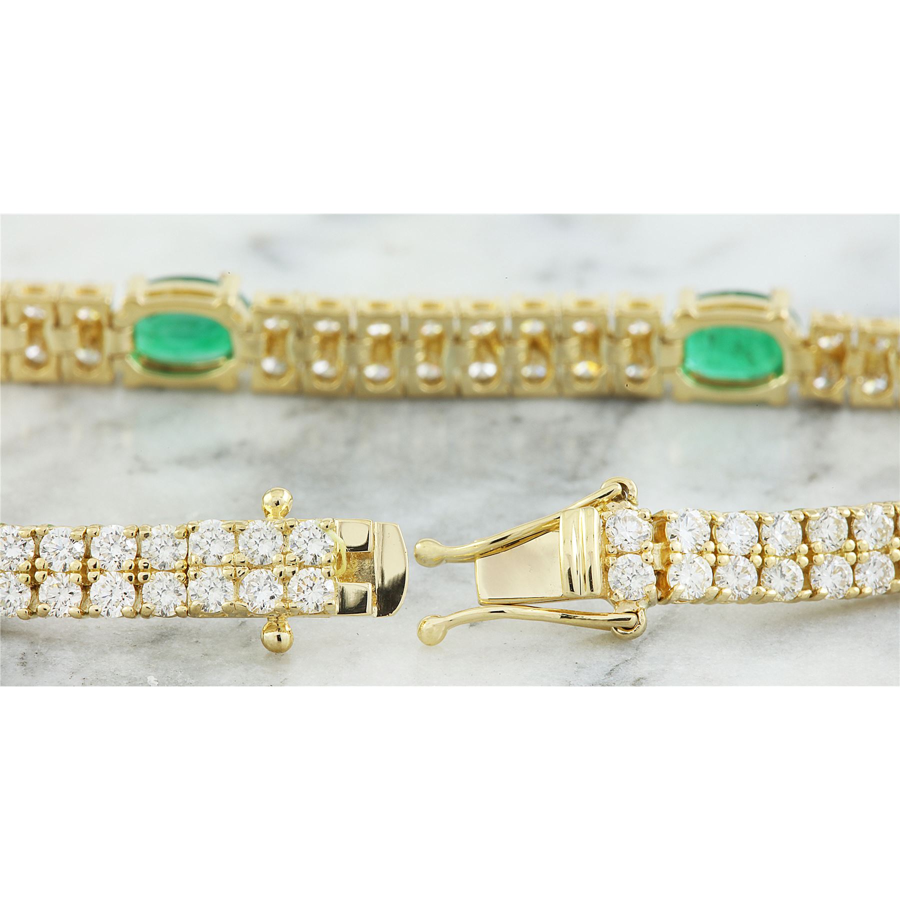 7.32 CTW Emerald 18K Yellow Gold Diamond Bracelet