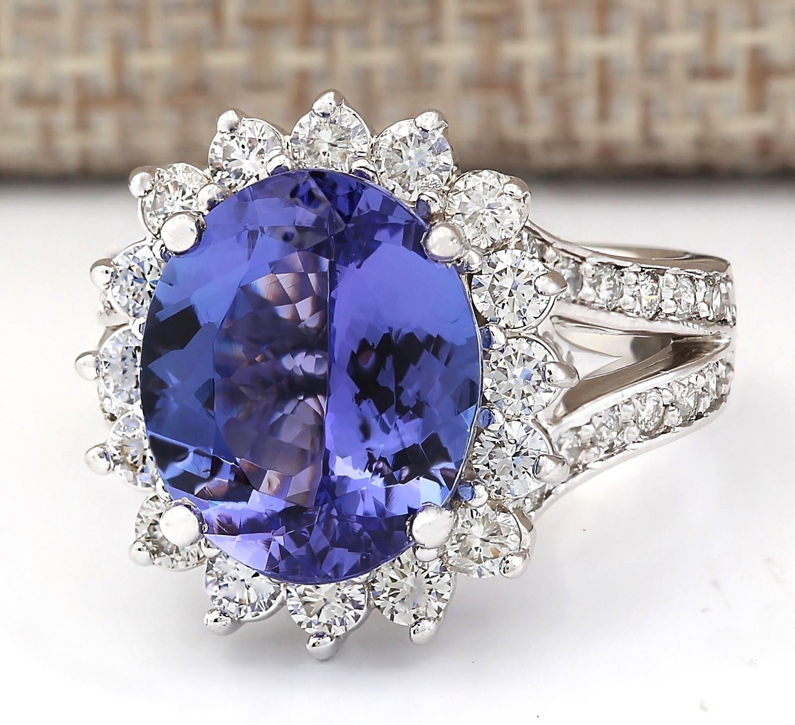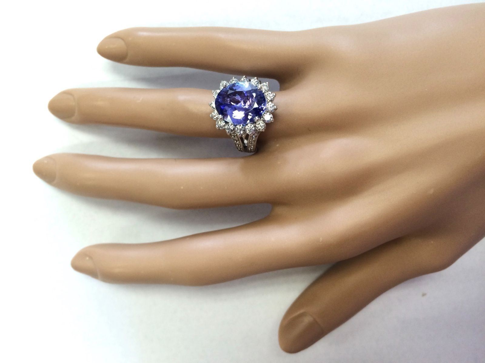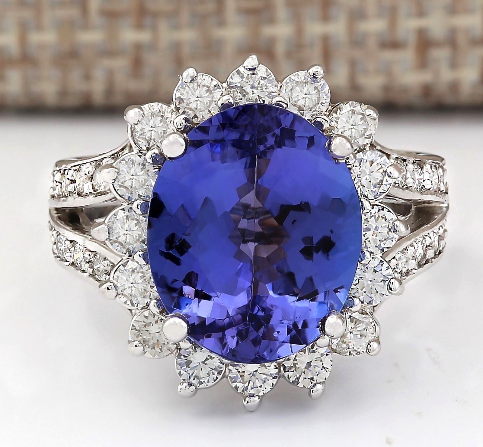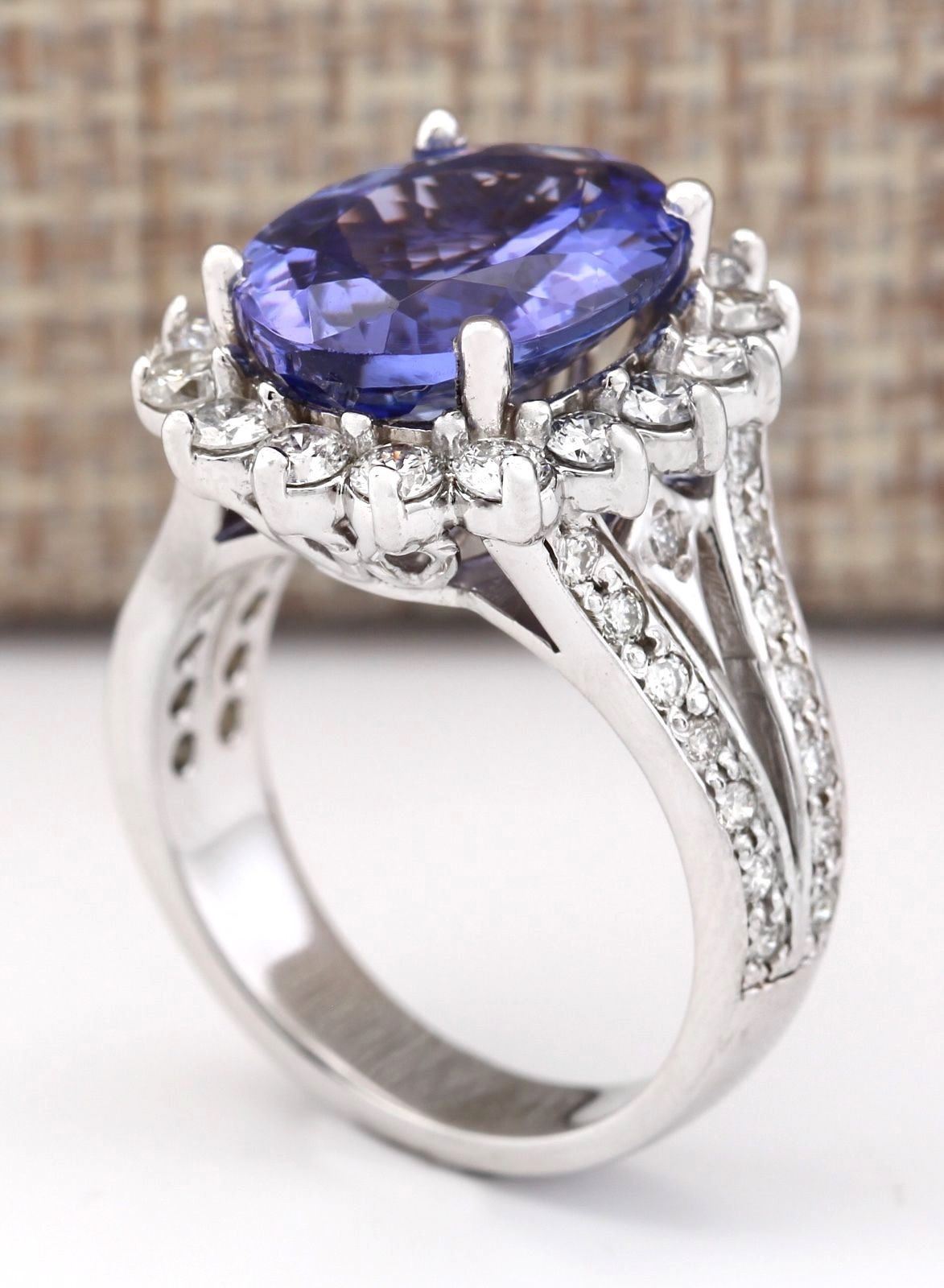 7.33 CTW Natural Blue Tanzanite And Diamond Ring 18K Solid White Gold