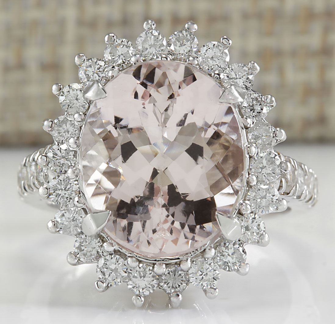 7.34 CTW Natural Morganite And Diamond Ring In 14K White Gold