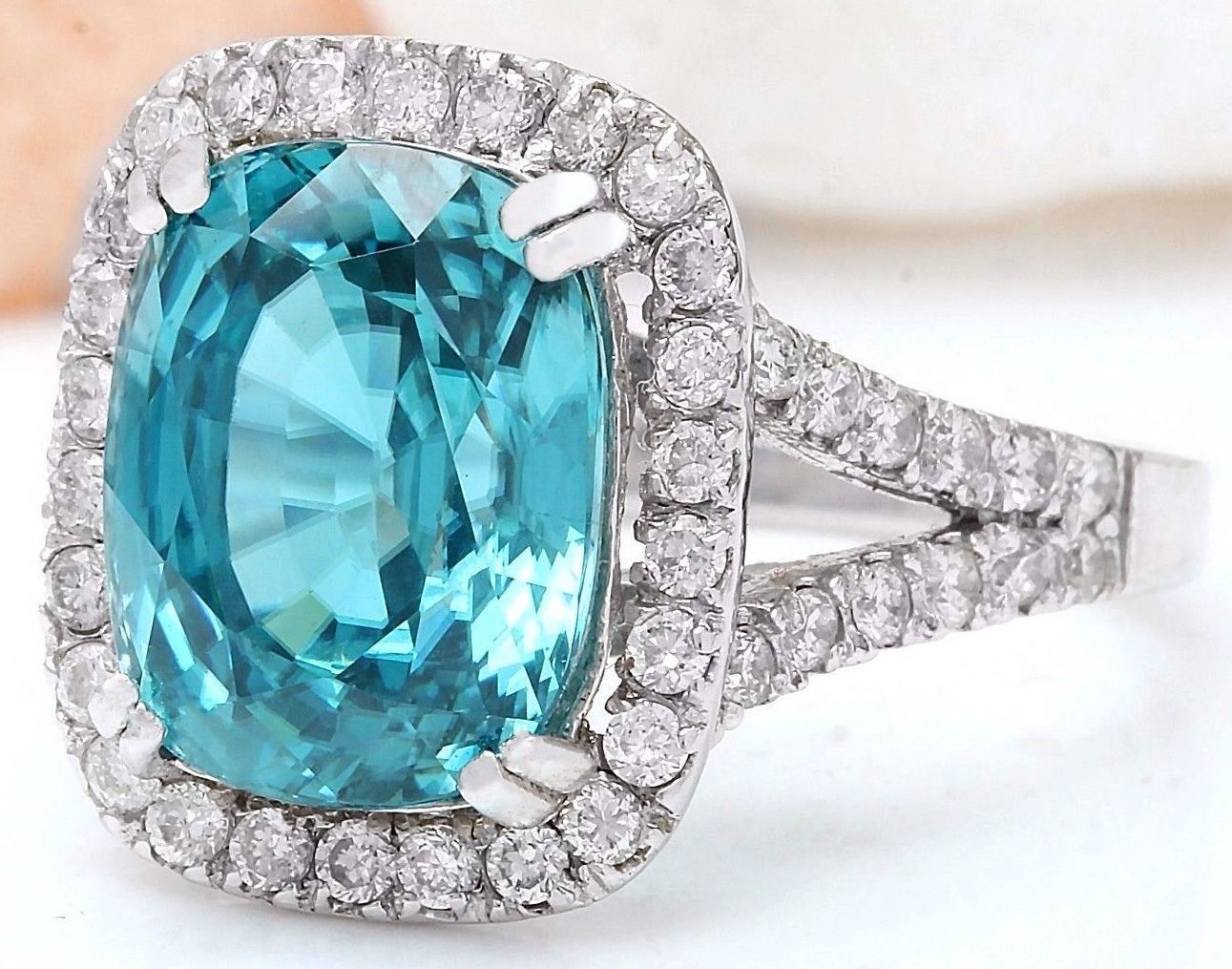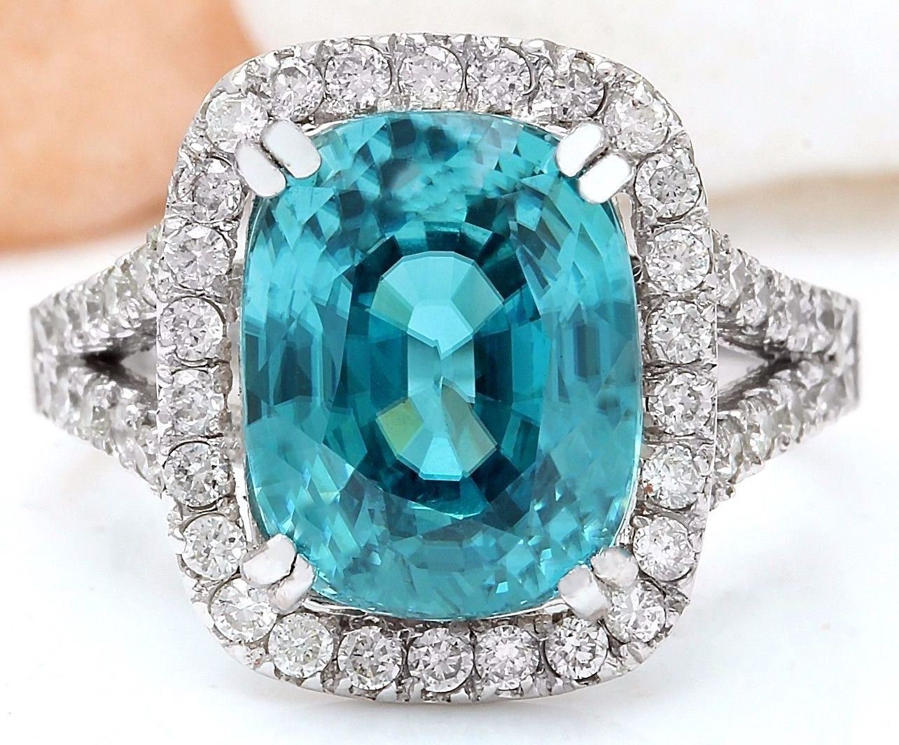 7.34 Carat Natural Zircon 14K Solid White Gold Diamond Ring