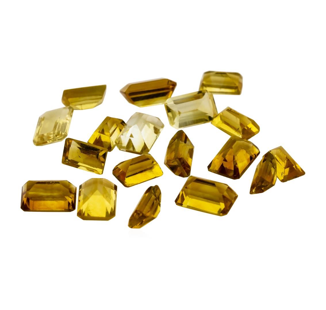 One natural emerald cut citrine quartz parcel of eighteen with an exact weight of 7.34ctw., clarity is eye clean, slightly yellowish orange, medium dark to light. Gemological Appraisals Services estimates the retail value at $220.2 GAS Appraised.