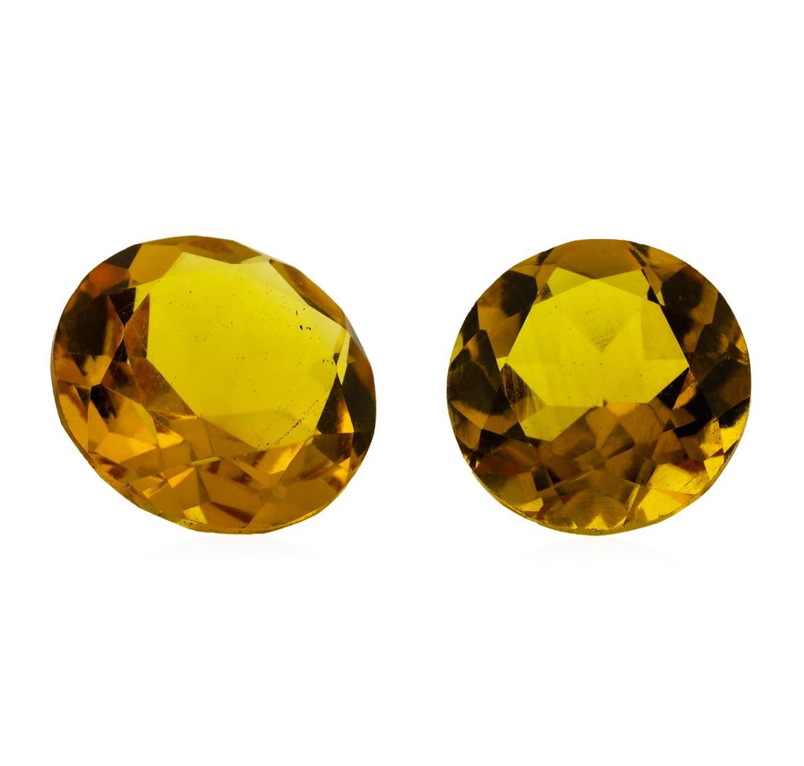 One natural round cut citrine quartz parcel of two with an exact weight of 7.34ctw., clarity is eye clean, yellowish orange, medium dark. Gemological Appraisals Services estimates the retail value at $293.6 GAS Appraised.