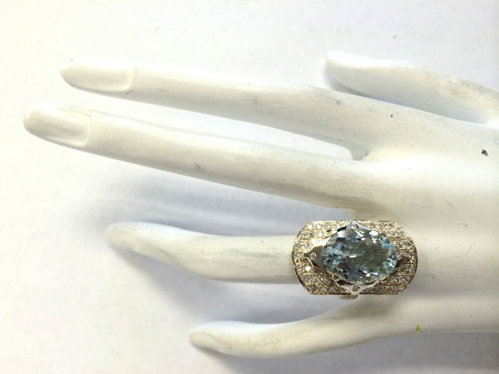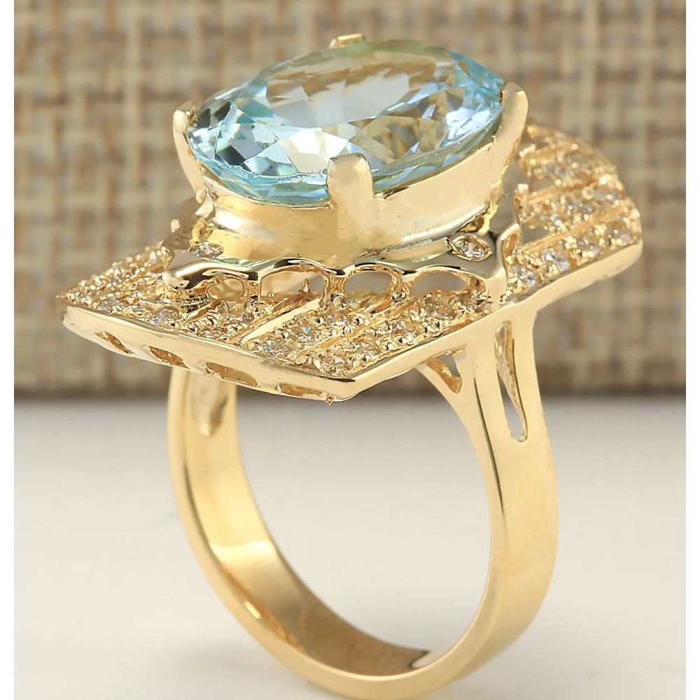 7.35 CTW Natural Aquamarine And Diamond Ring In 14K Yellow Gold