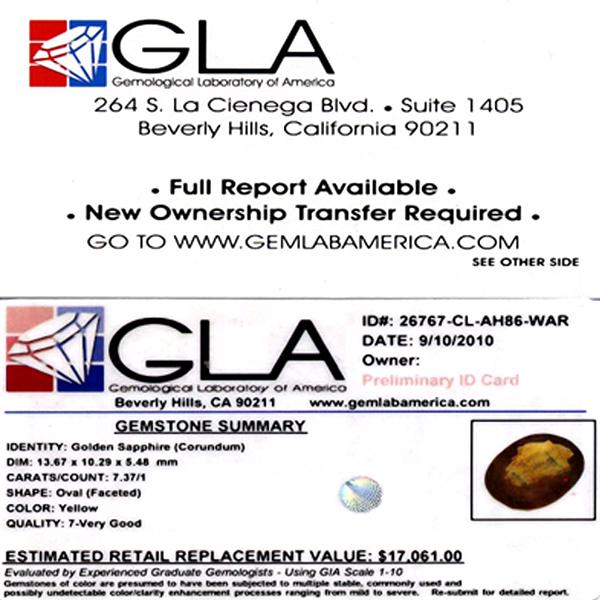 Excellent clear golden pink orange colored specimen oval cut; lab quality evaluation 7; treatment as noted; Gem Guide wholesale $2580-$4422; full retail appraisal $17061; full lab evaluation available