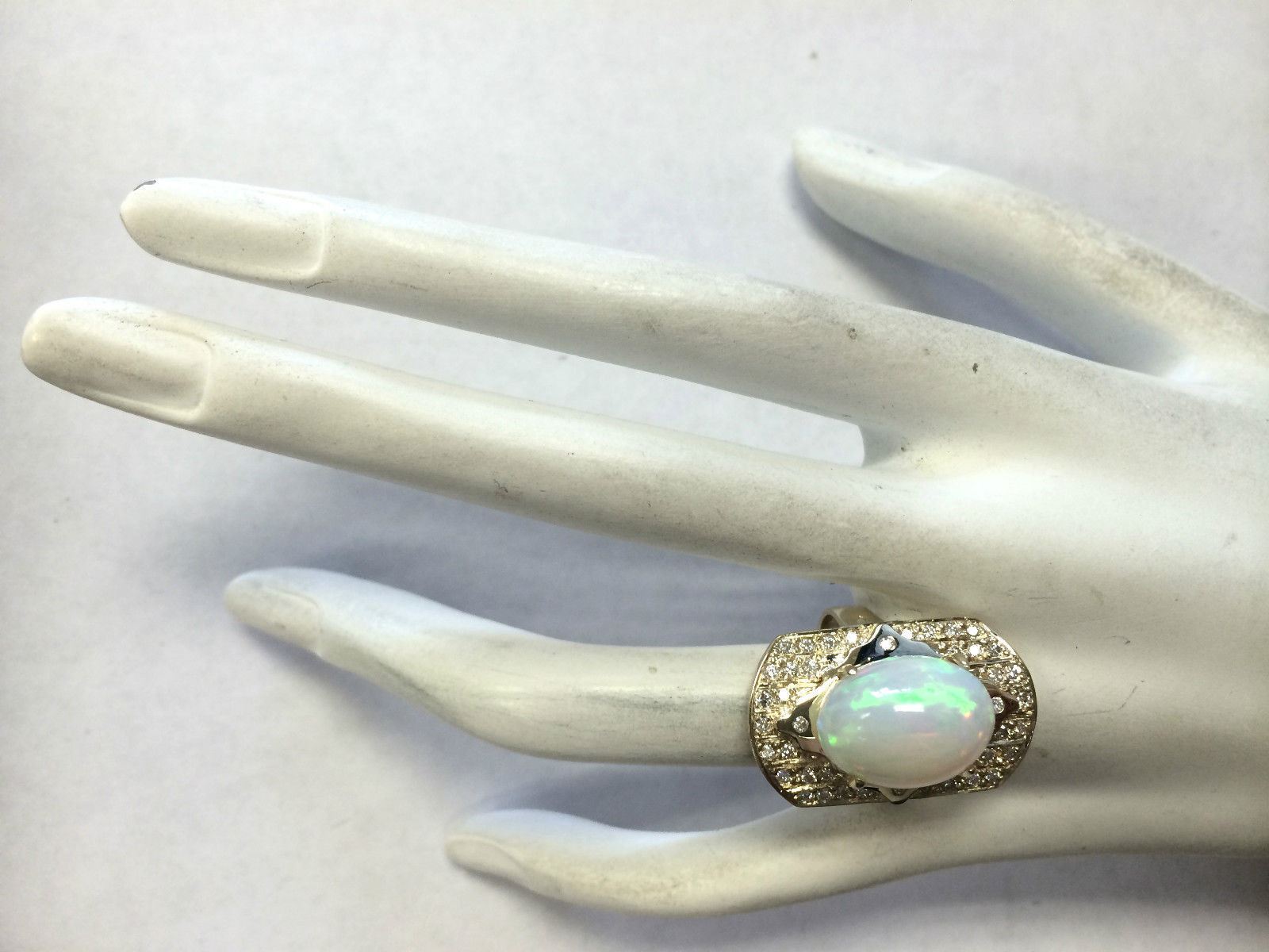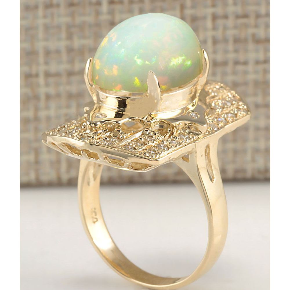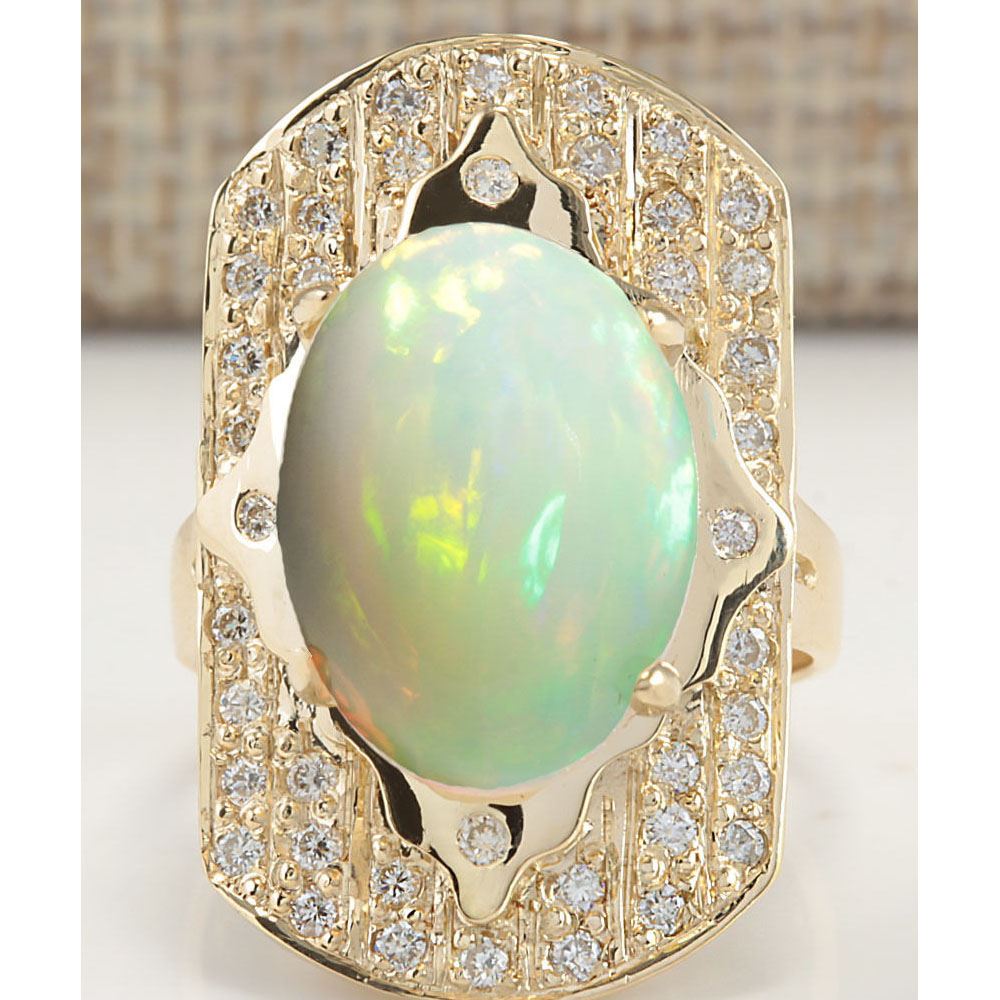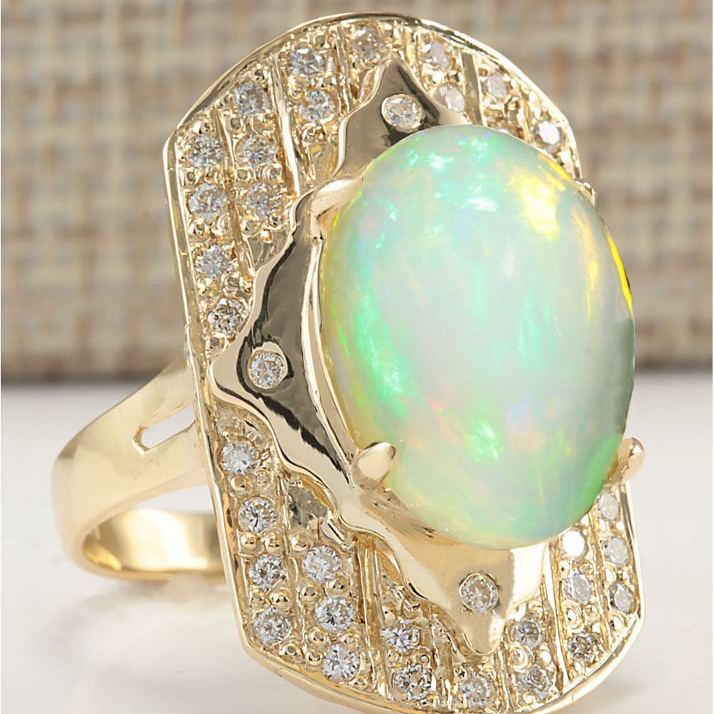 7.38 CTW Natural Opal And Diamond Ring In 14K Yellow Gold