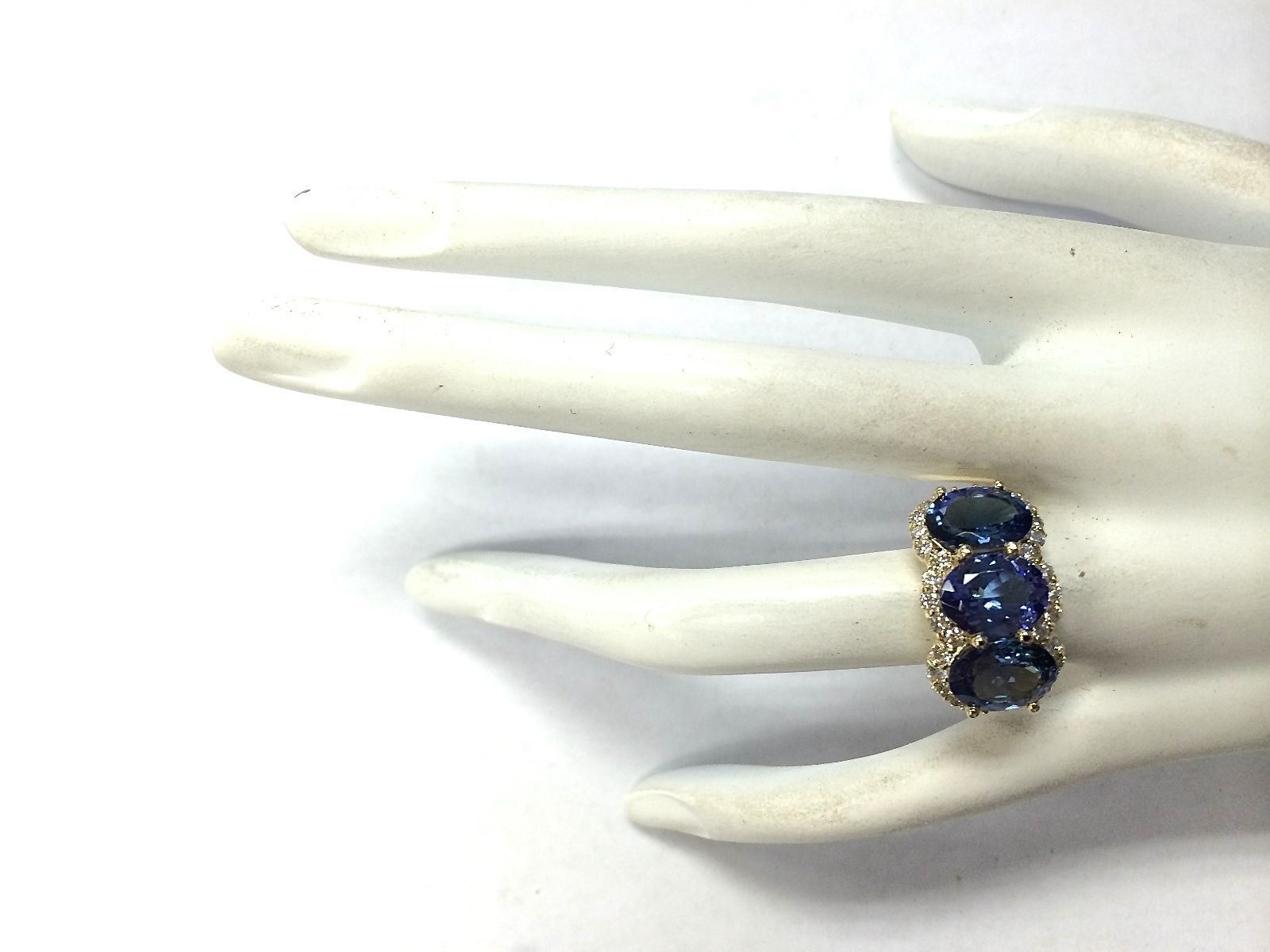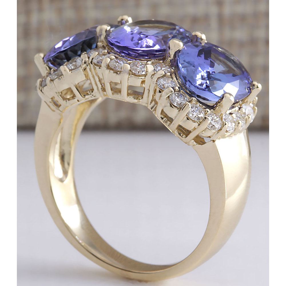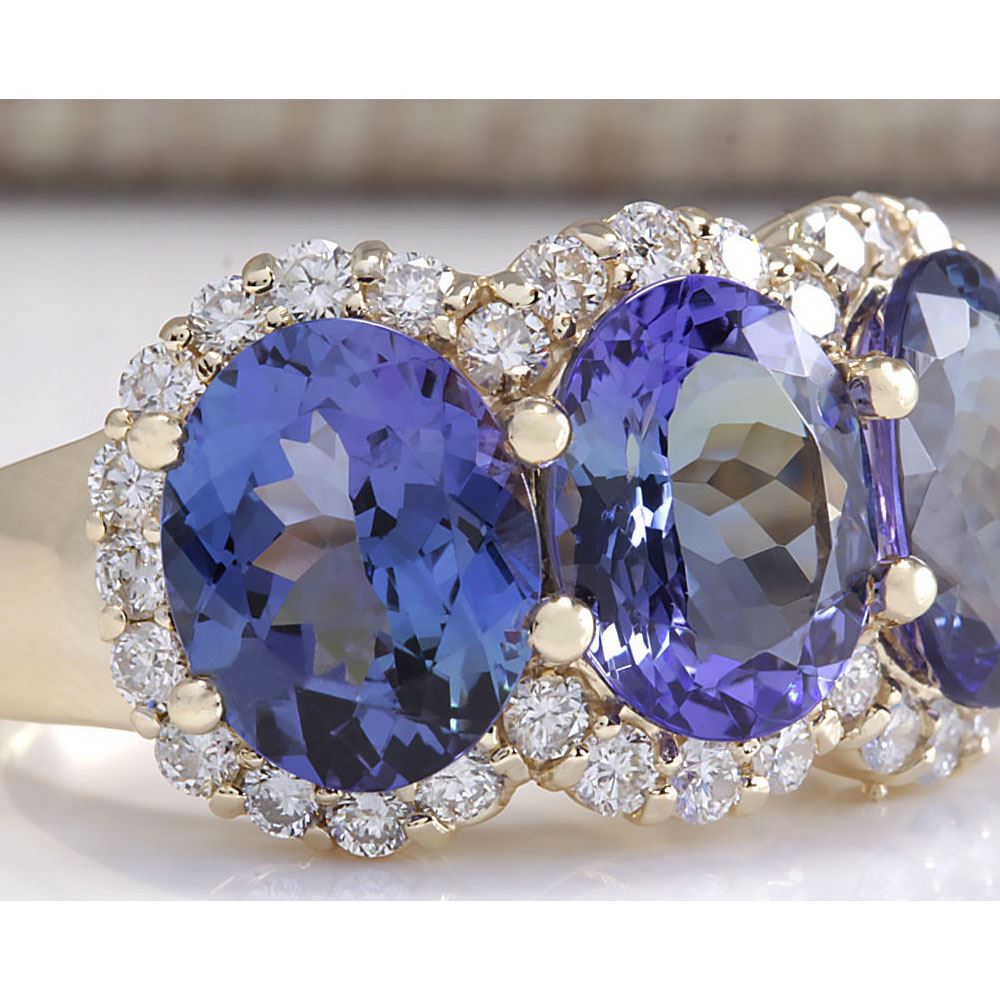 7.38 CTW Natural Tanzanite And Diamond Ring 18K Solid Yellow Gold
