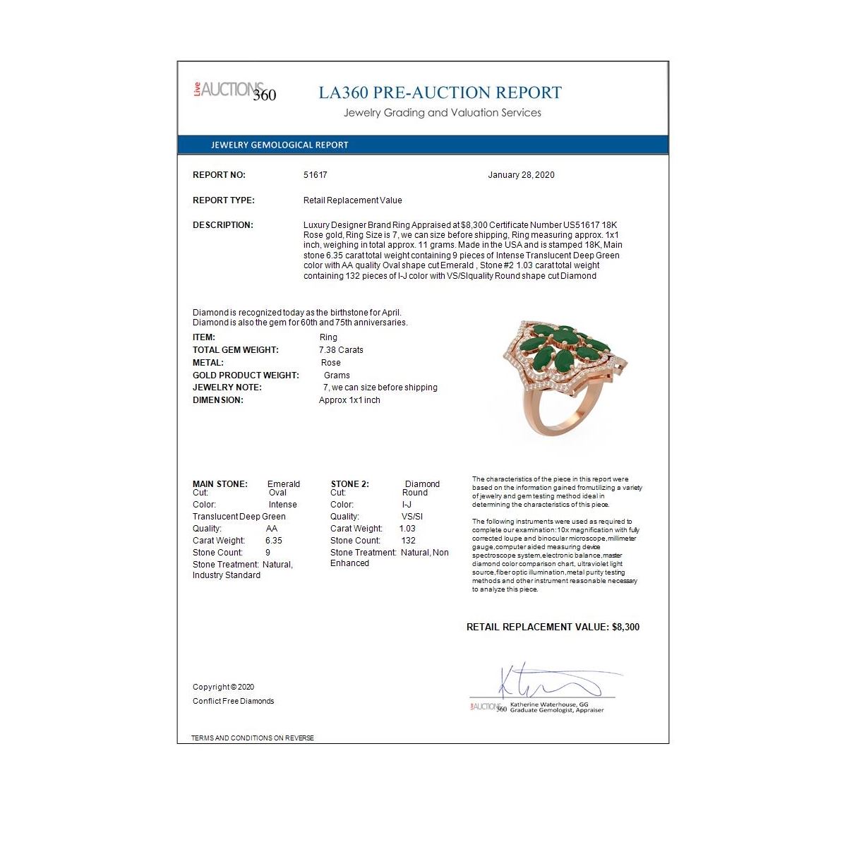 REF-188R5K - SKU: 51617 ---- 7.38 ctw Emerald & Diamond Ring 18K Rose Gold