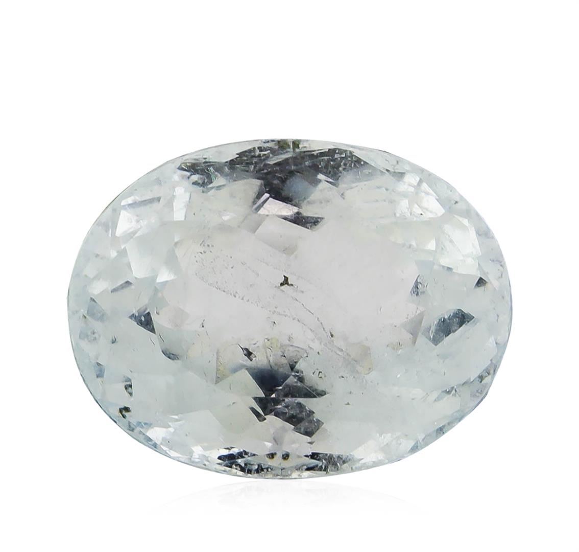 One natural oval cut aquamarine with an exact weight of 7.39ct., clarity is slightly included, slightly grayish greenish blue. Gemological Appraisals Services estimates the retail value at $2586.5 GAS Appraised.