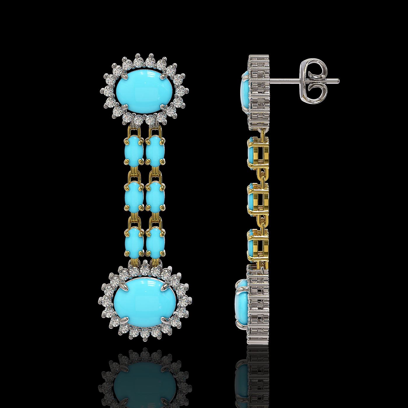 REF-143G3W - SKU: 44335 ---- 7.39 ctw Turquoise & Diamond Earrings 14K Yellow Gold