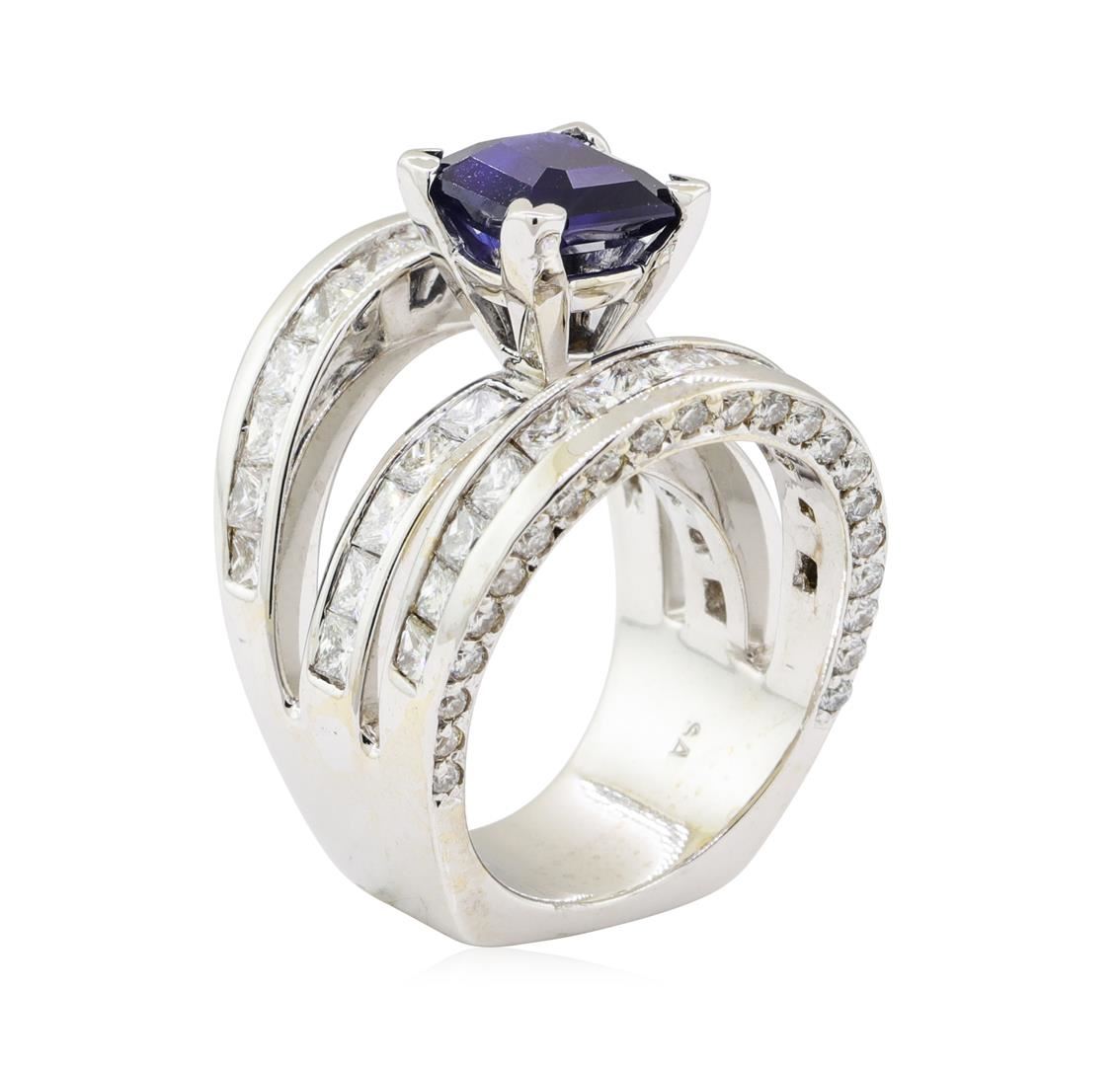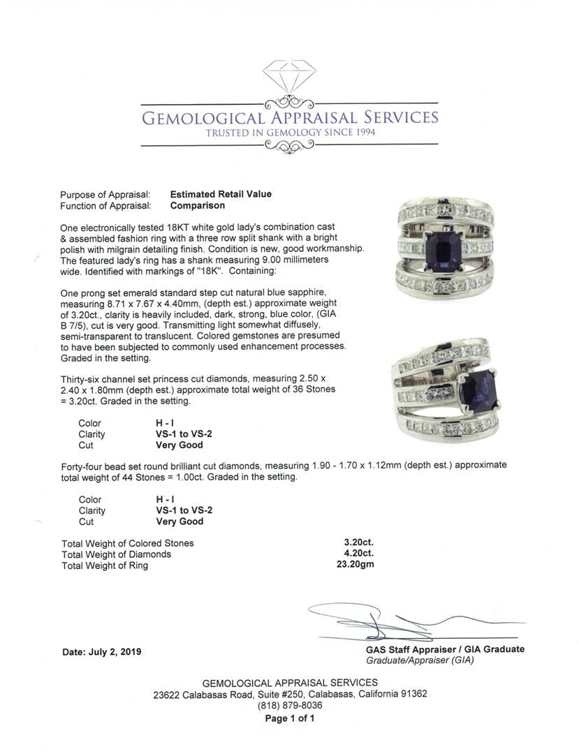 One electronically tested 18KT white gold lady's combination cast & assembled fashion ring with a three row split shank with a bright polish with milgrain detailing finish. The featured lady's ring has a shank measuring 9.00 millimeters wide. Identified w