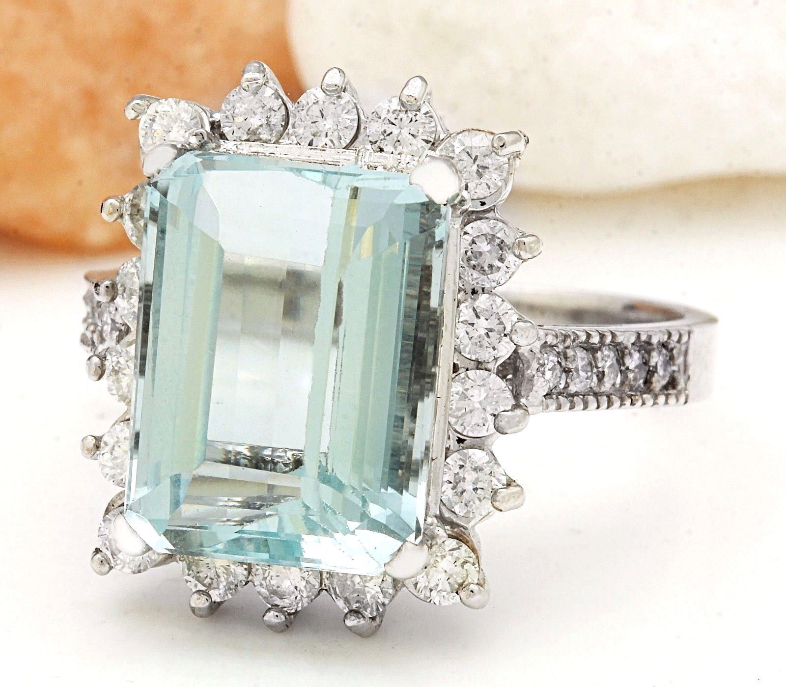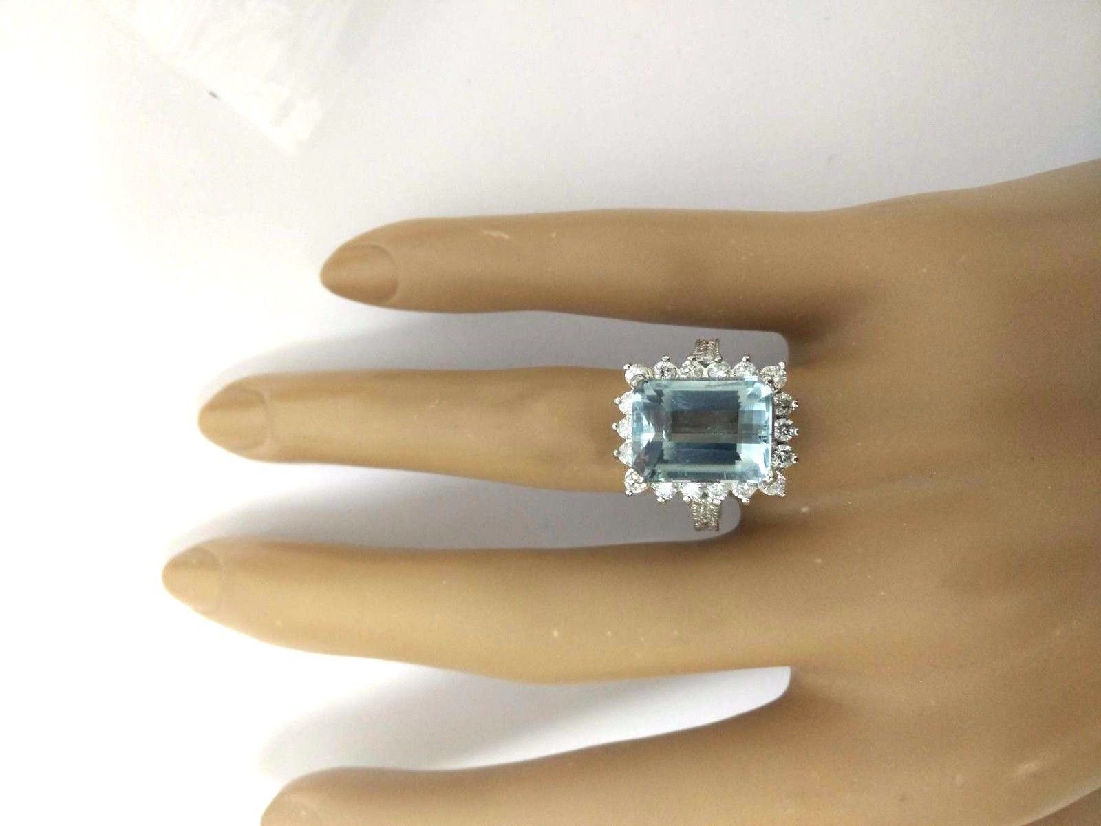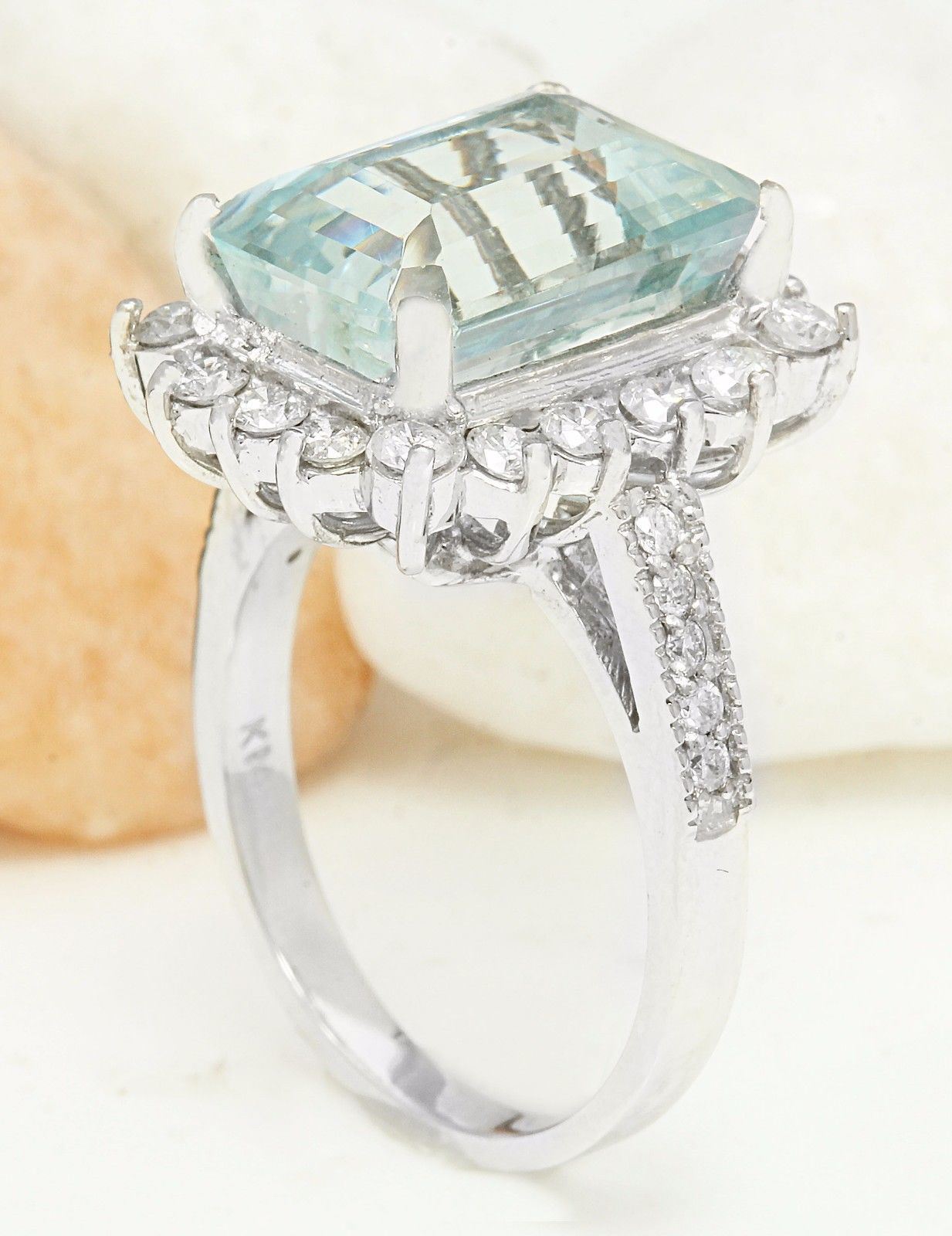 7.43 Carat Natural Aquamarine 14K Solid White Gold Diamond Ring