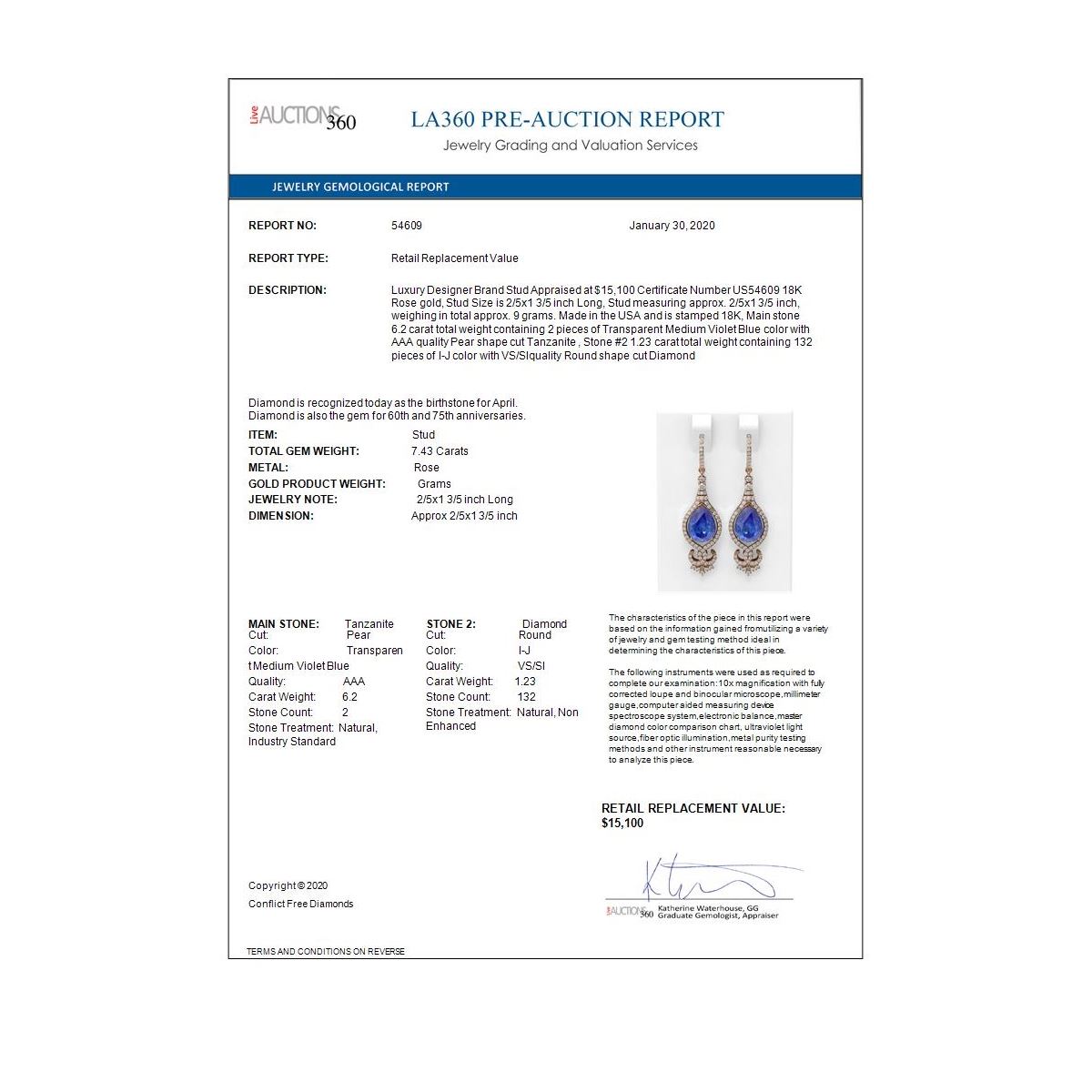 REF-343W6H - SKU: 54609 ---- 7.43 ctw Tanzanite & Diamond Earrings 18K Rose Gold