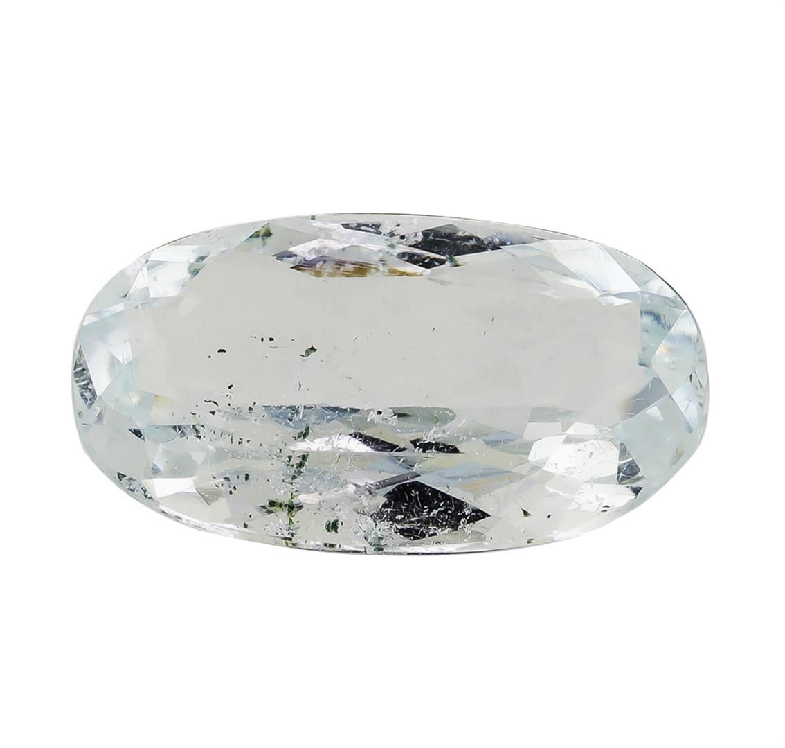 One natural oval cut aquamarine with an exact weight of 7.44ct., clarity is slightly included, slightly grayish greenish blue. Gemological Appraisals Services estimates the retail value at $2604 GAS Appraised.