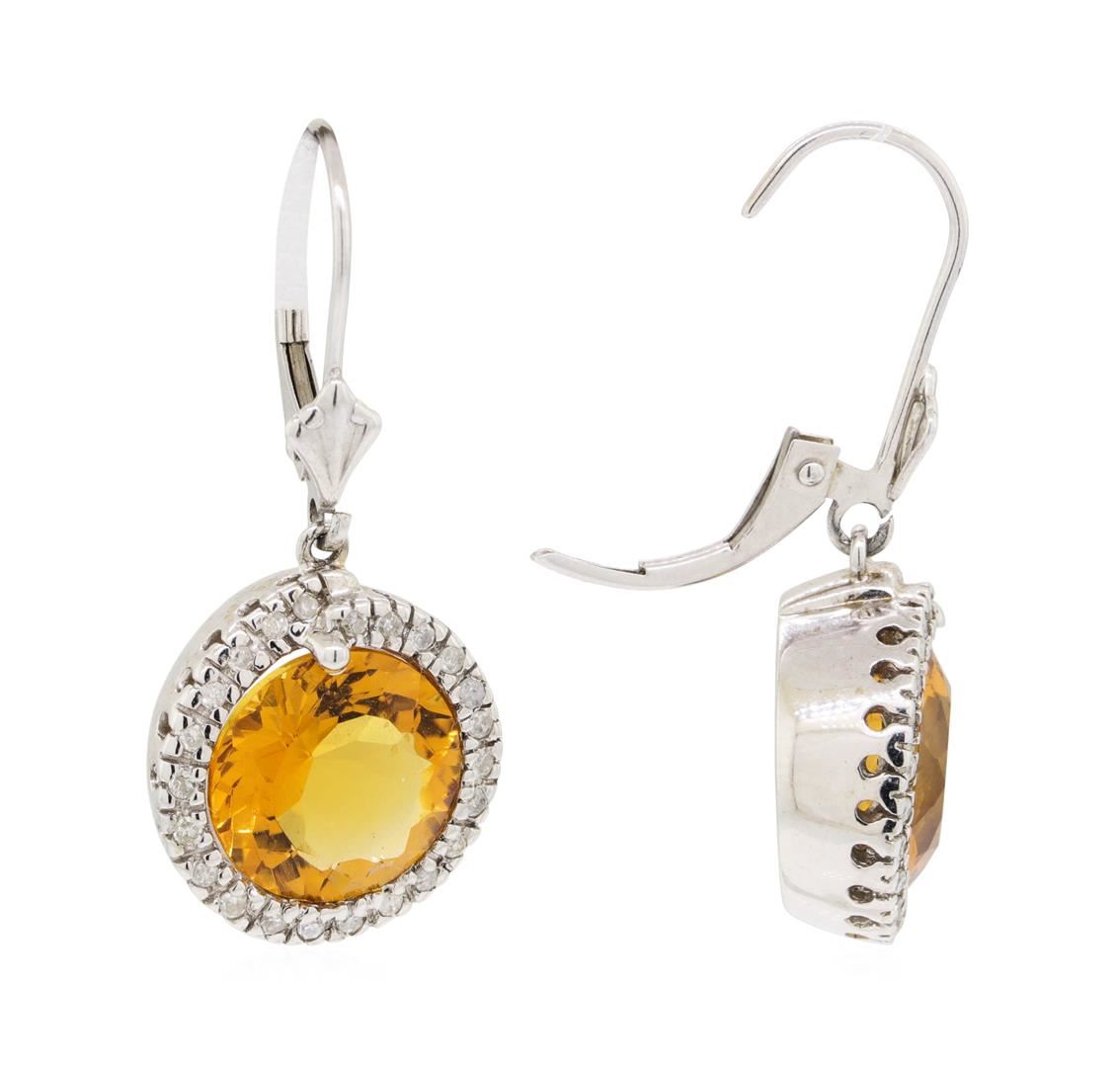 One pair of lady's earrings with lever backs featuring: 14KT white gold weighing 6.6 grams containing citrine weighing 7.15ctw and diamonds weighing 0.32ctw.
