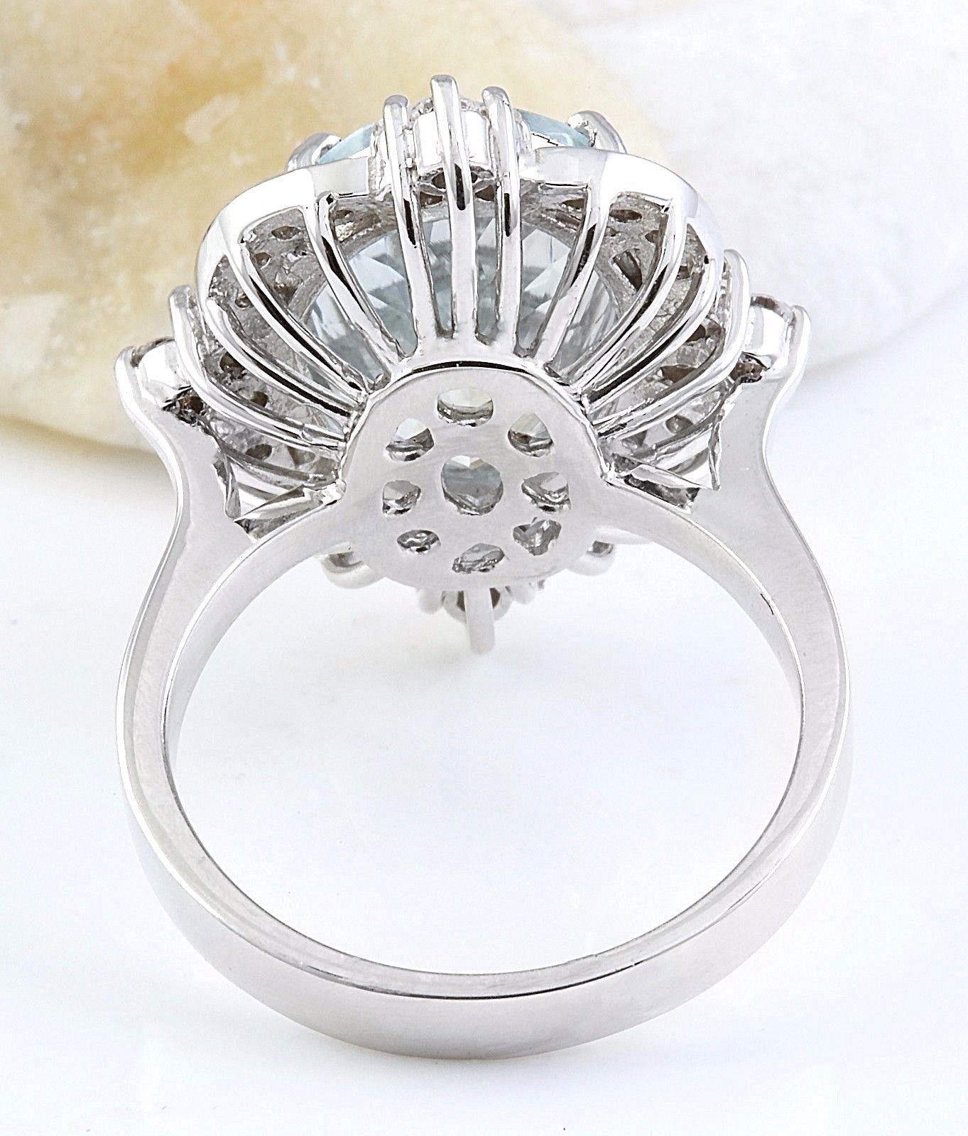 7.48 Carat Natural Aquamarine 14K Solid White Gold Diamond Ring