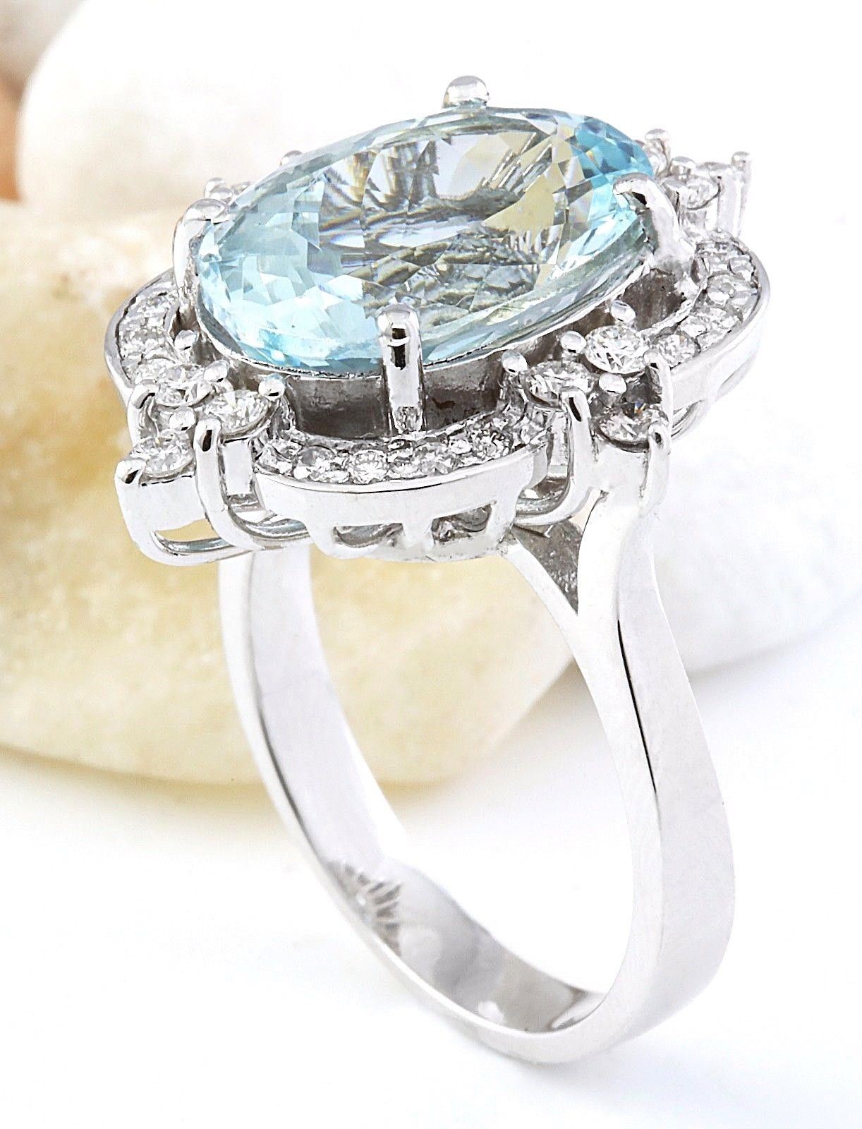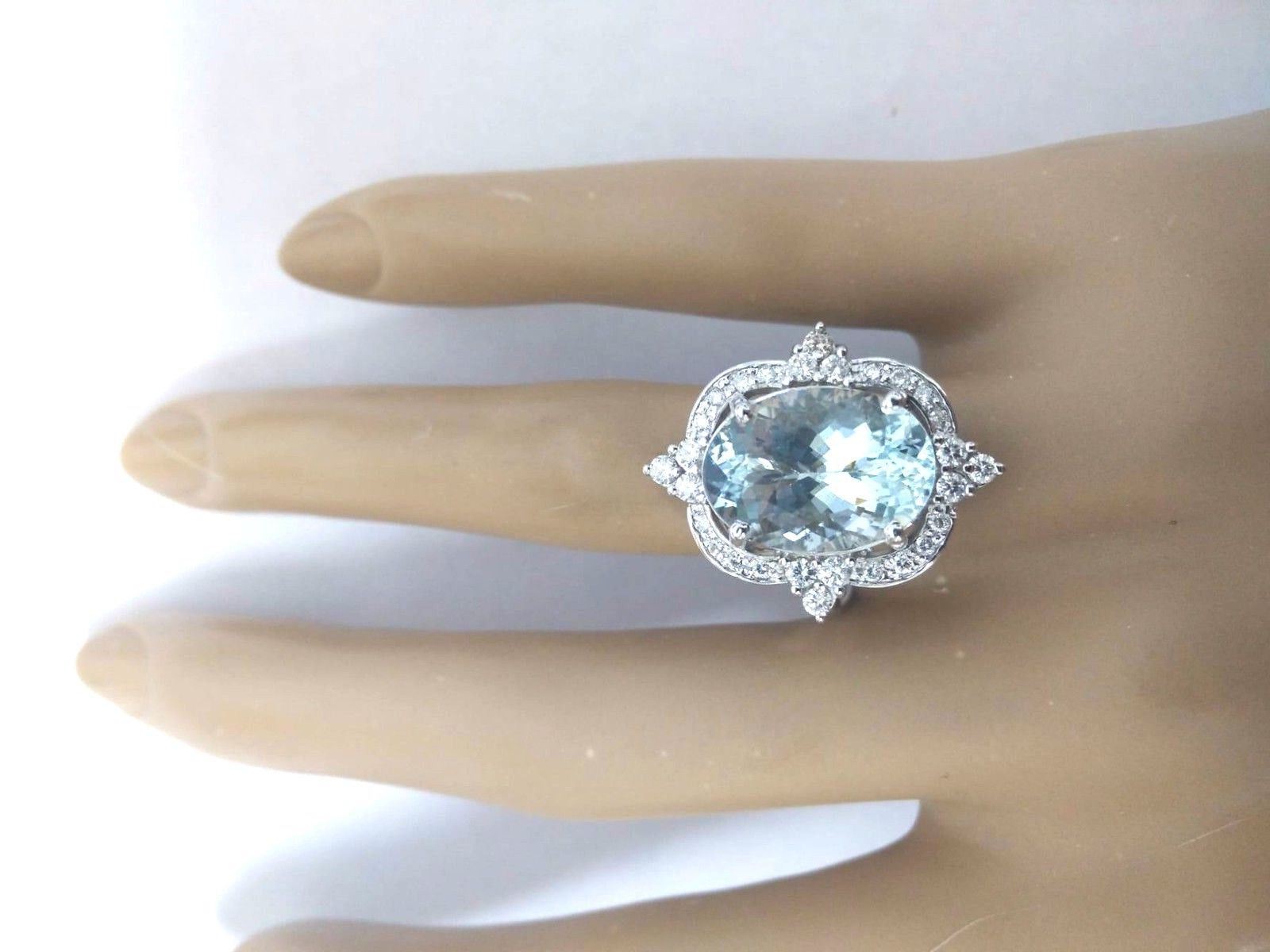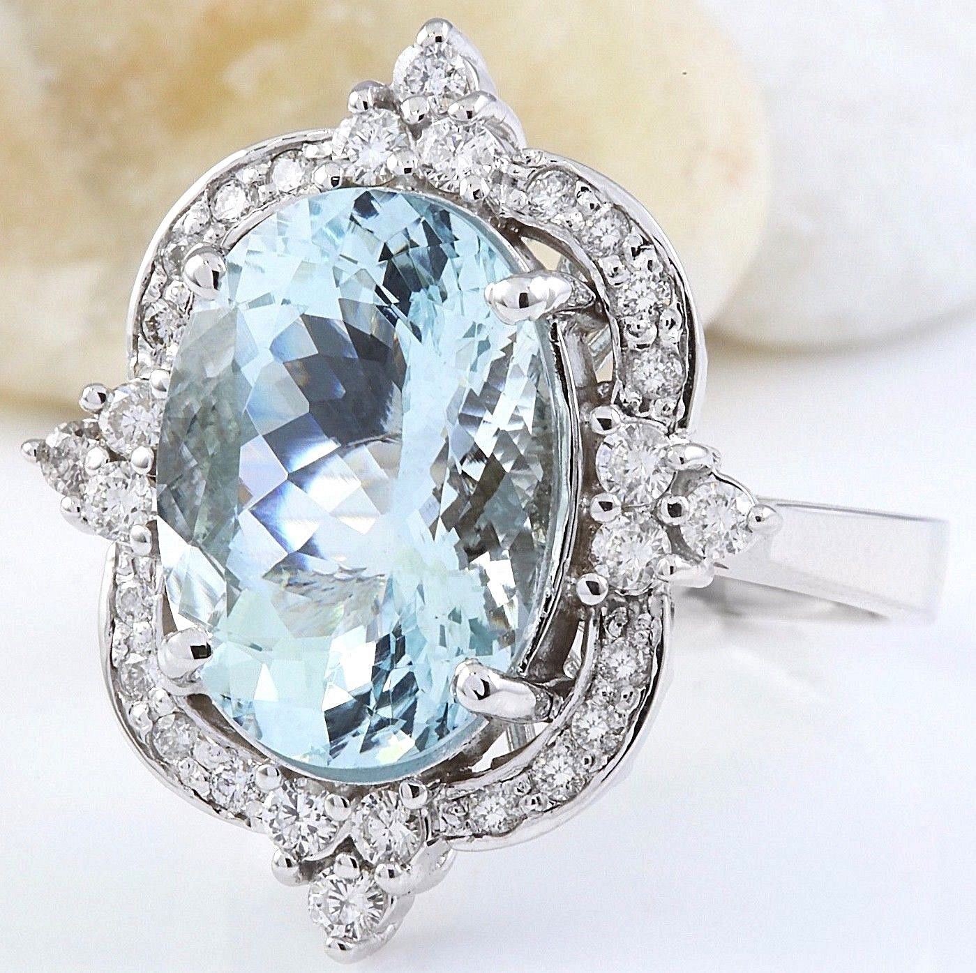 7.48 Carat Natural Aquamarine 18K Solid White Gold Diamond Ring