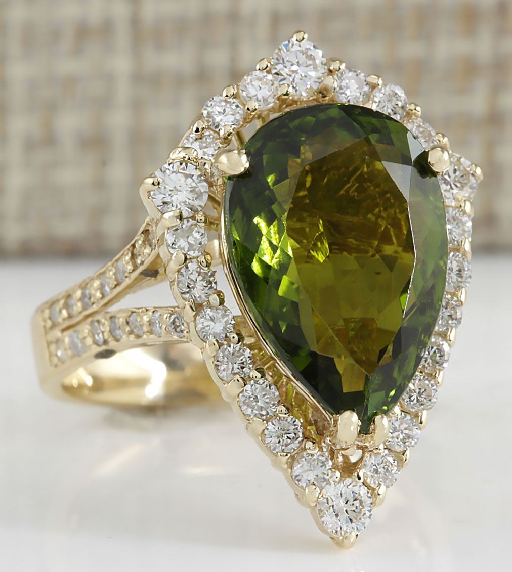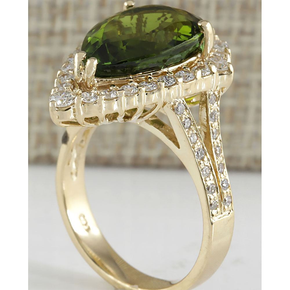 7.48 CTW Natural Green Tourmaline And Diamond Ring In 14K Yellow Gold