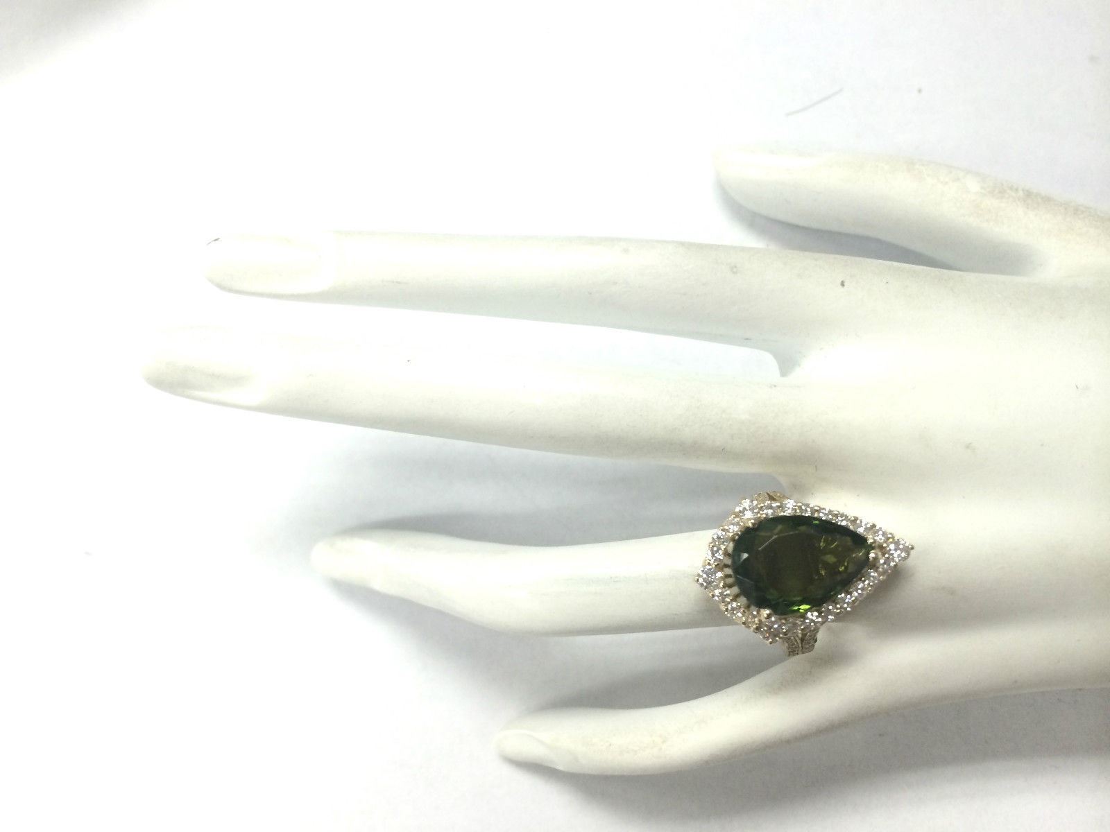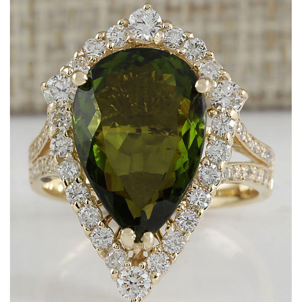 7.48 CTW Natural Green Tourmaline And Diamond Ring In 18K Yellow Gold