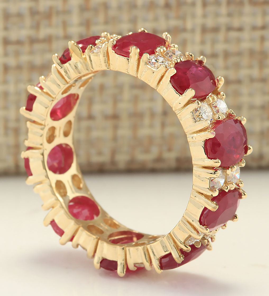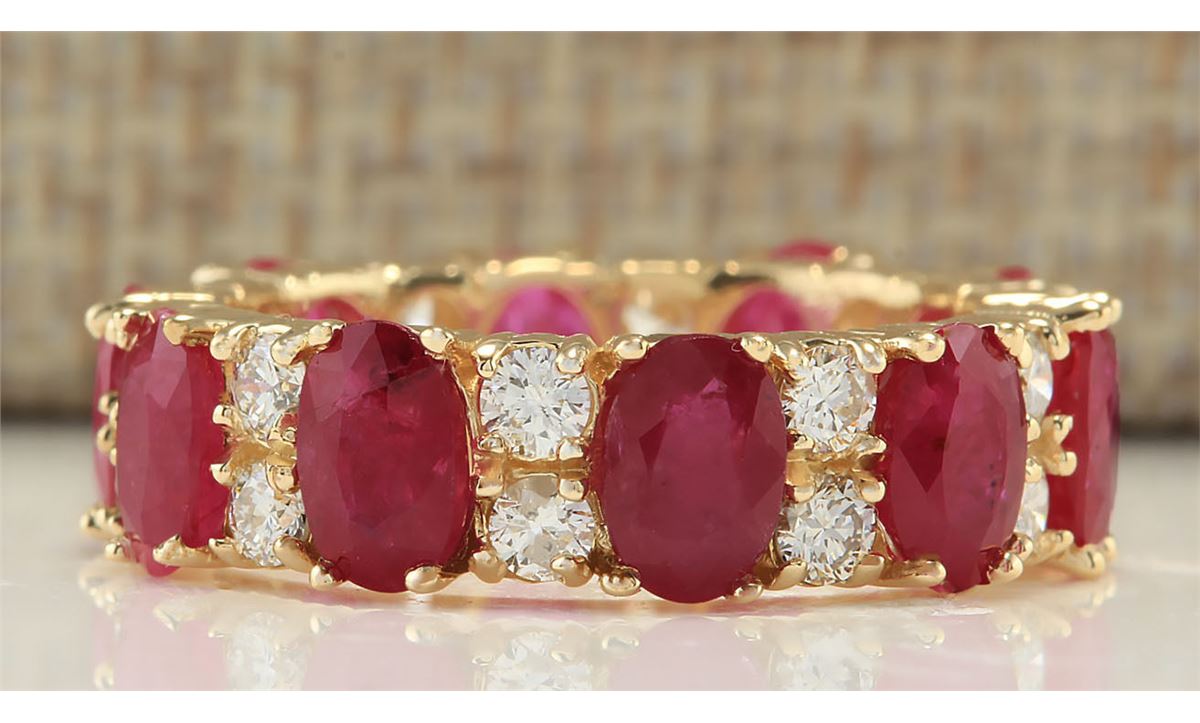 Stamped: 14K Ring Size: 6.75 (Sizing 7-8 only) Total Ring Weight: 6 Grams Diamond Weight: Total natural diamond weight is 1.20carat. SI1-SI2 clarity / G-H color Gemstone Weight: Total Natural Ruby Weight is 6.28ctw (Measures: 6x4mm) African ruby no glass or led filling, heat only!!! Face Measures: 6.10mm Main stone color: Red [SKU:702248]
