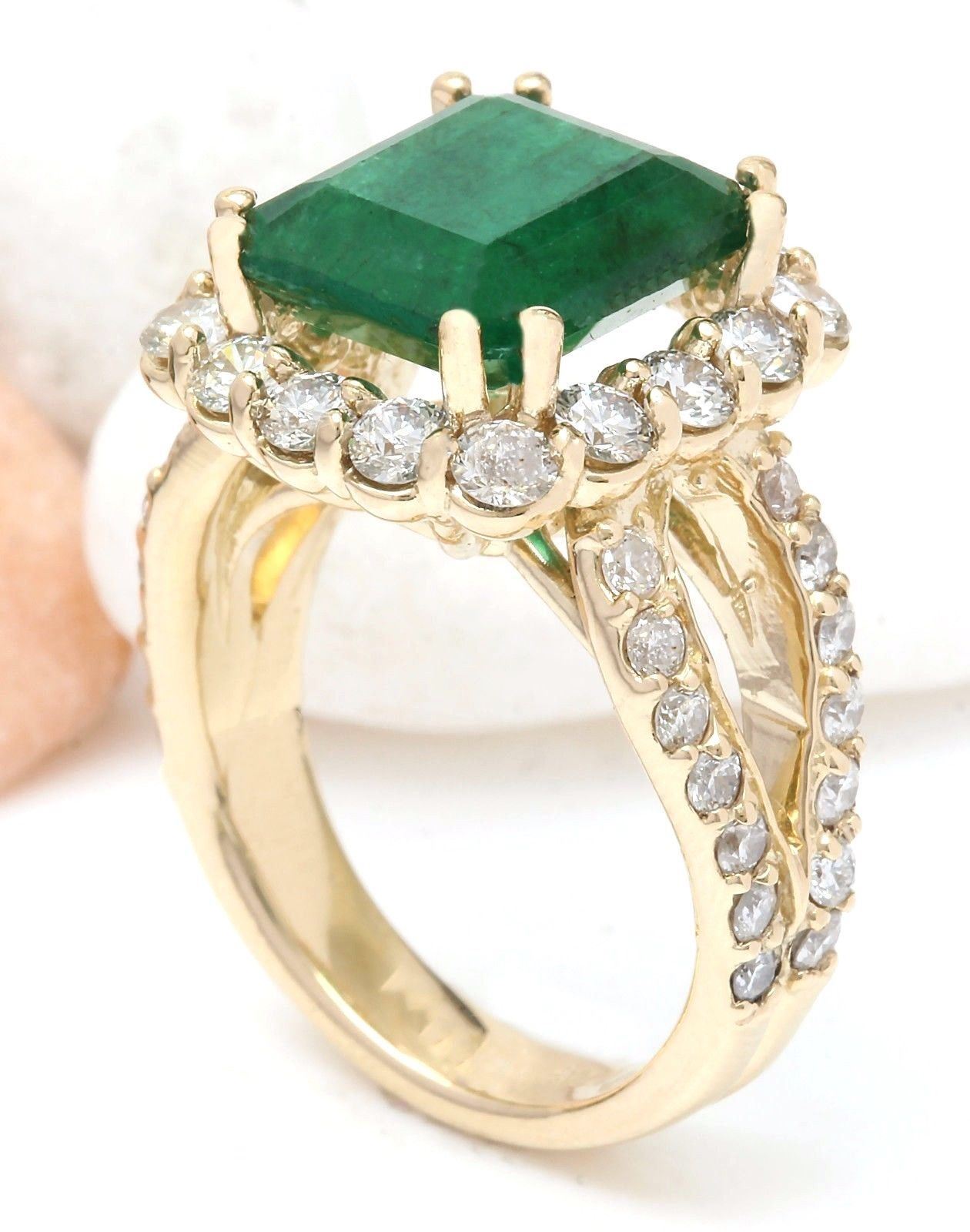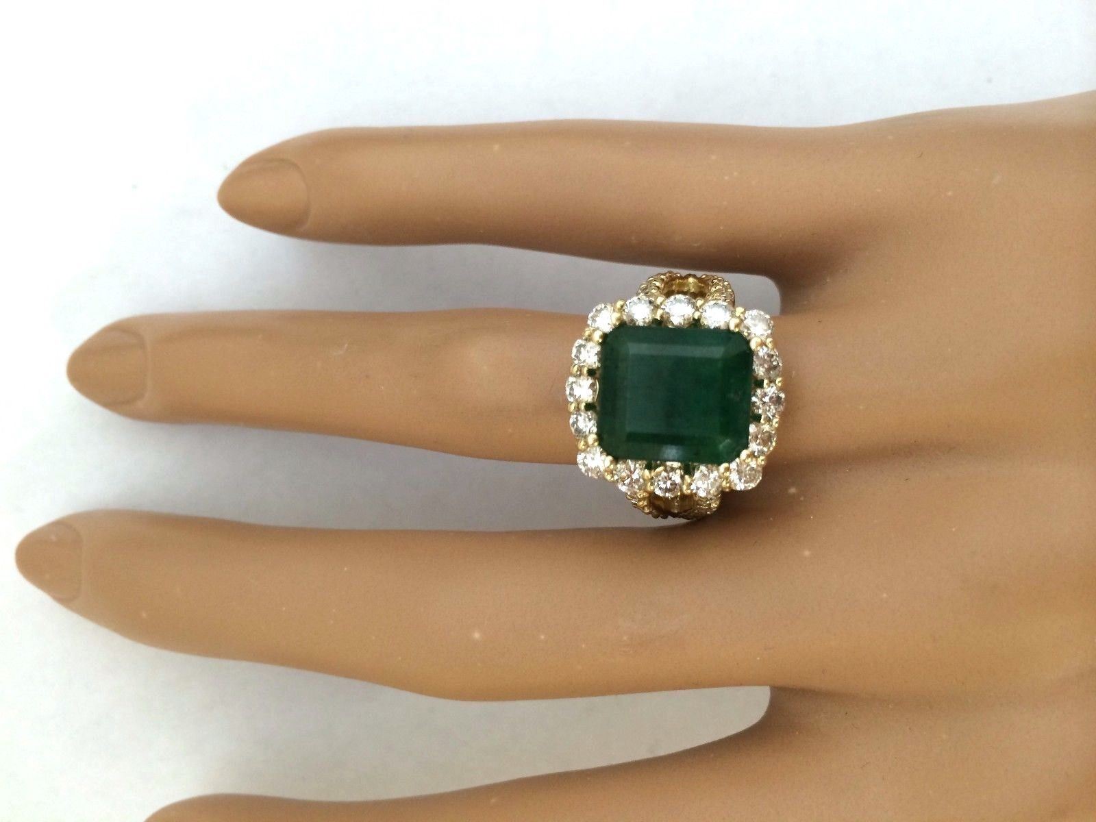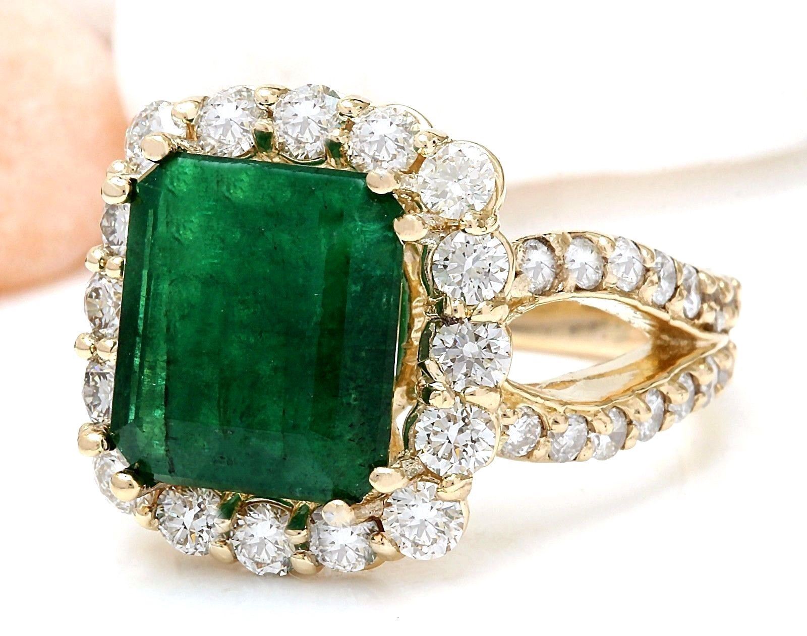 7.49 Carat Natural Emerald 14K Solid Yellow Gold Diamond Ring