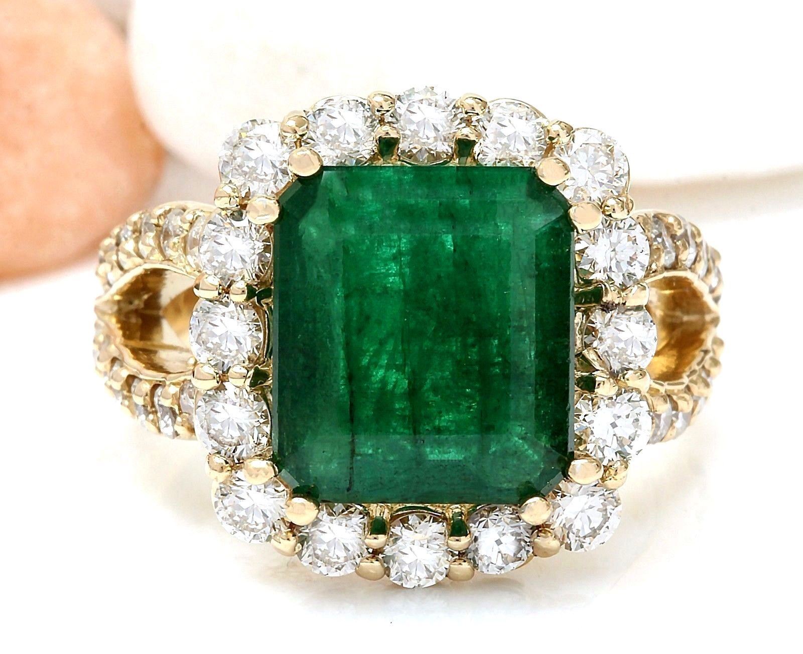 7.49 Carat Natural Emerald 18K Solid Yellow Gold Diamond Ring