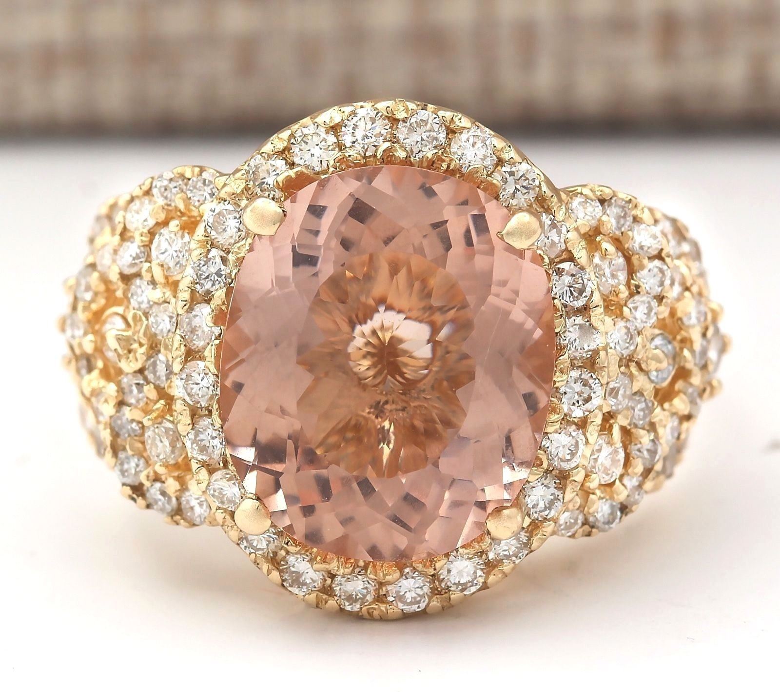 7.49 CTW Natural Morganite And Diamond Ring In 18K Solid Yellow Gold