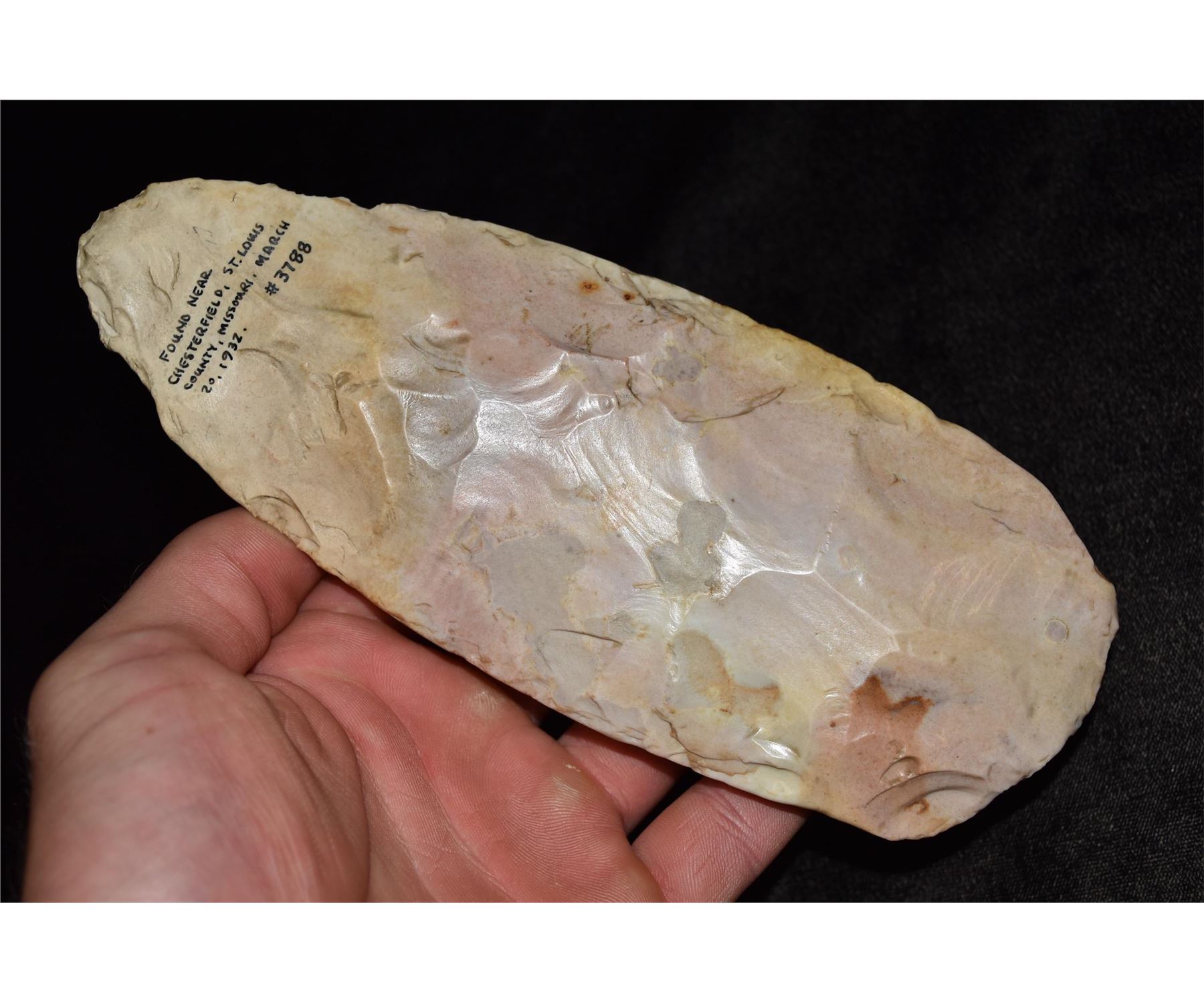 8 5/8" Highly Polished High Ridge Chert Spade, Found near Chesterfield St Louis Co, Missouri, March 30 1932, Ex Ben Thompson