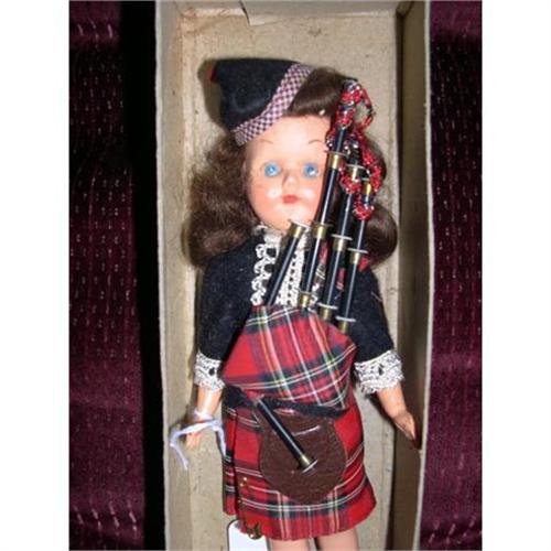 7.5" Bonnie Brae Scottish Doll in her box. Box label says British Made. Her eyese open and close and she has her bagpipes. Her head and arms move. Doll comes from a smoke free environment. Buyer to pay 10.00 shipping, handling, and insurance. Thanks for viewing.
