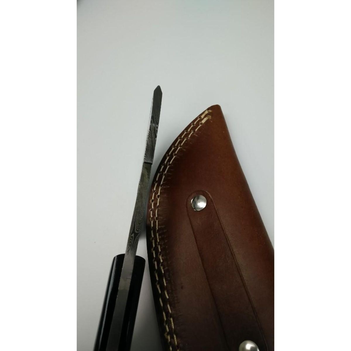 For Auction Is A Stunning Handmade Damascus FULL TANG Drop Point Blade *With Hand Crafted & Hand Stitched Leather Sheath Each blade is created Using 256 Layers Of 1095 and 15N20 High Carbon Steels​​​​​​ To Produce A Superior Edge And Maintain A High Tensile Strength In the Steel. The Handle Is Made Of Select Ebony, Turned And Finished To Produce A Stunning End Quality. Fitted With Brass Rivets To Ensure A Fantastic Fit And Finish Damascus Steel Blade with 256 Layers on it. HARDNESS 56-60 H R C Handle: Ebony Sheath: Hand Crafted LeatherÂ