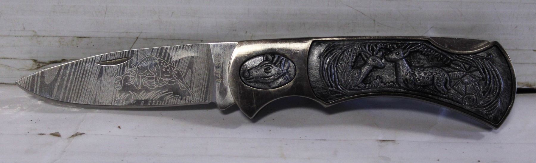 7.5 INCH OVERALL OSCARS FOLDING KNIFE DEER DESIGN