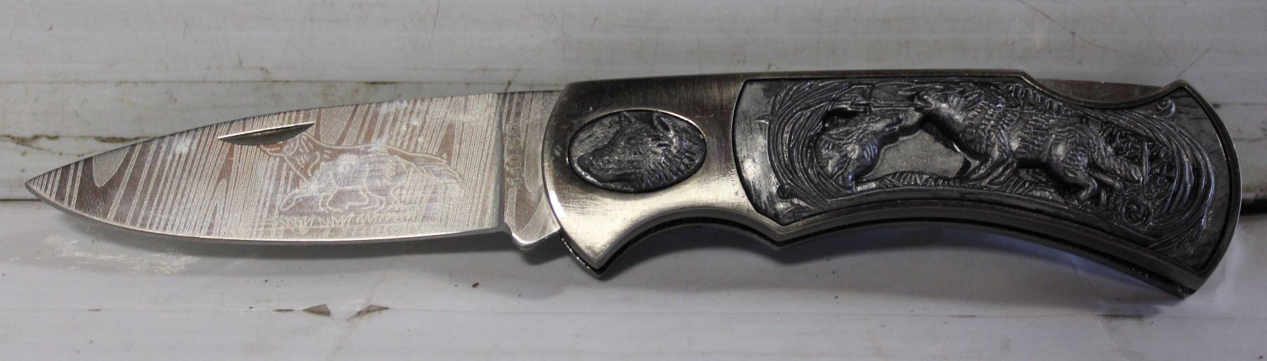 7.5 INCH OVERALL OSCARS FOLDING KNIFE WOLF DESIGN