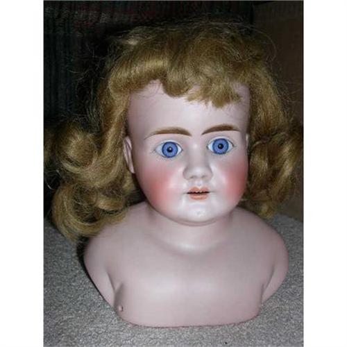 7.5" Simon & Halbig 1260 Bisque Head. The eyes have been set for this head. She has nice coloring.From shoulder to shoulder it is 6 1/4" and it's 3 3/4" from front to back. There are two tiny chips in the back on the inside. This will make a nice large doll. She has an open mouth with teeth. I put the wig in so you would have one. Doll comes from a smoke free environment. Buyer to pay $20 for shipping, handling, and insurance. Thanks for viewing.