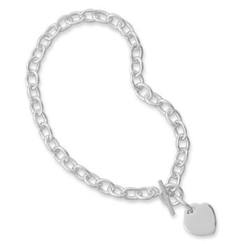 Bracelet is 5mm wide and features a 12mm flat heart. .925 Sterling Silver