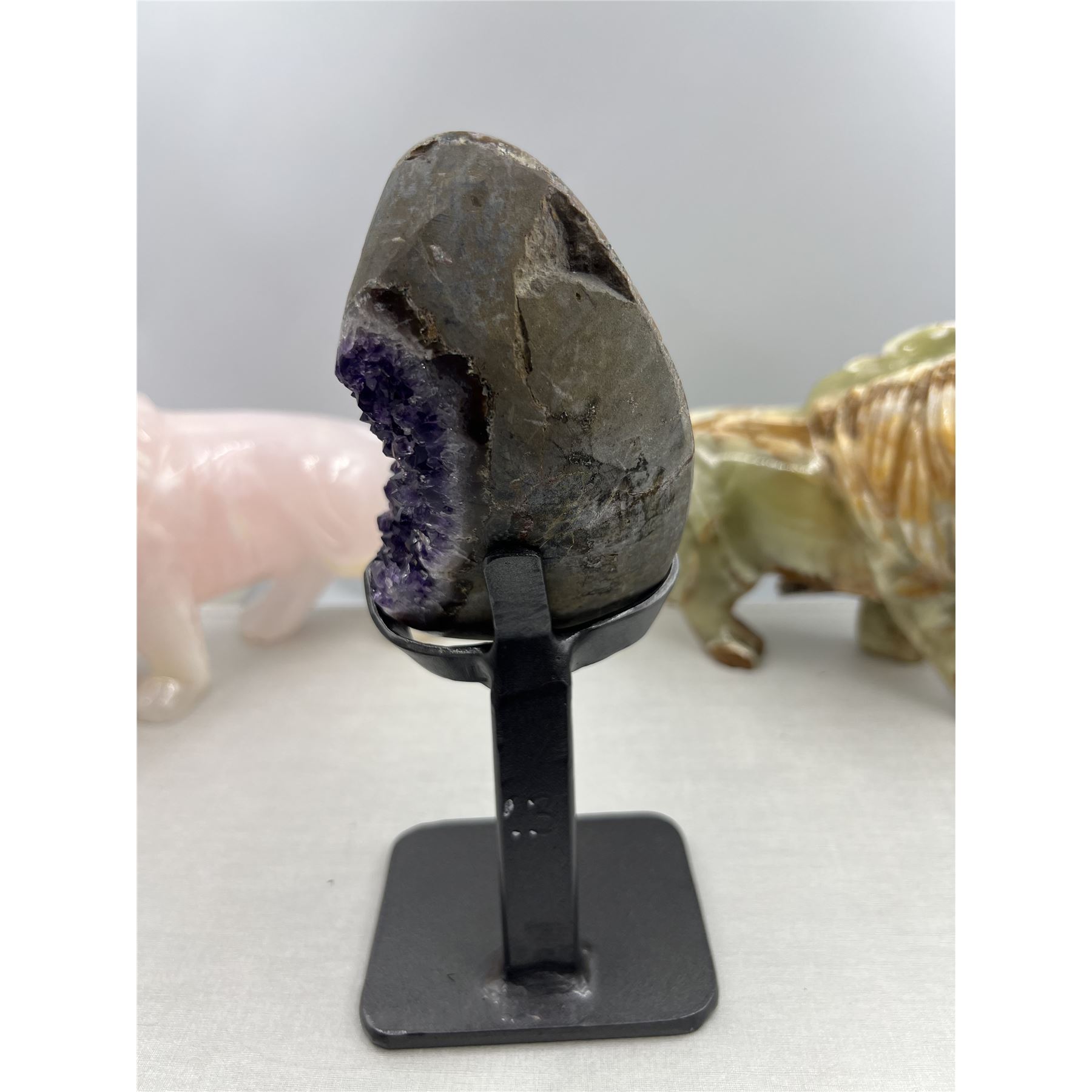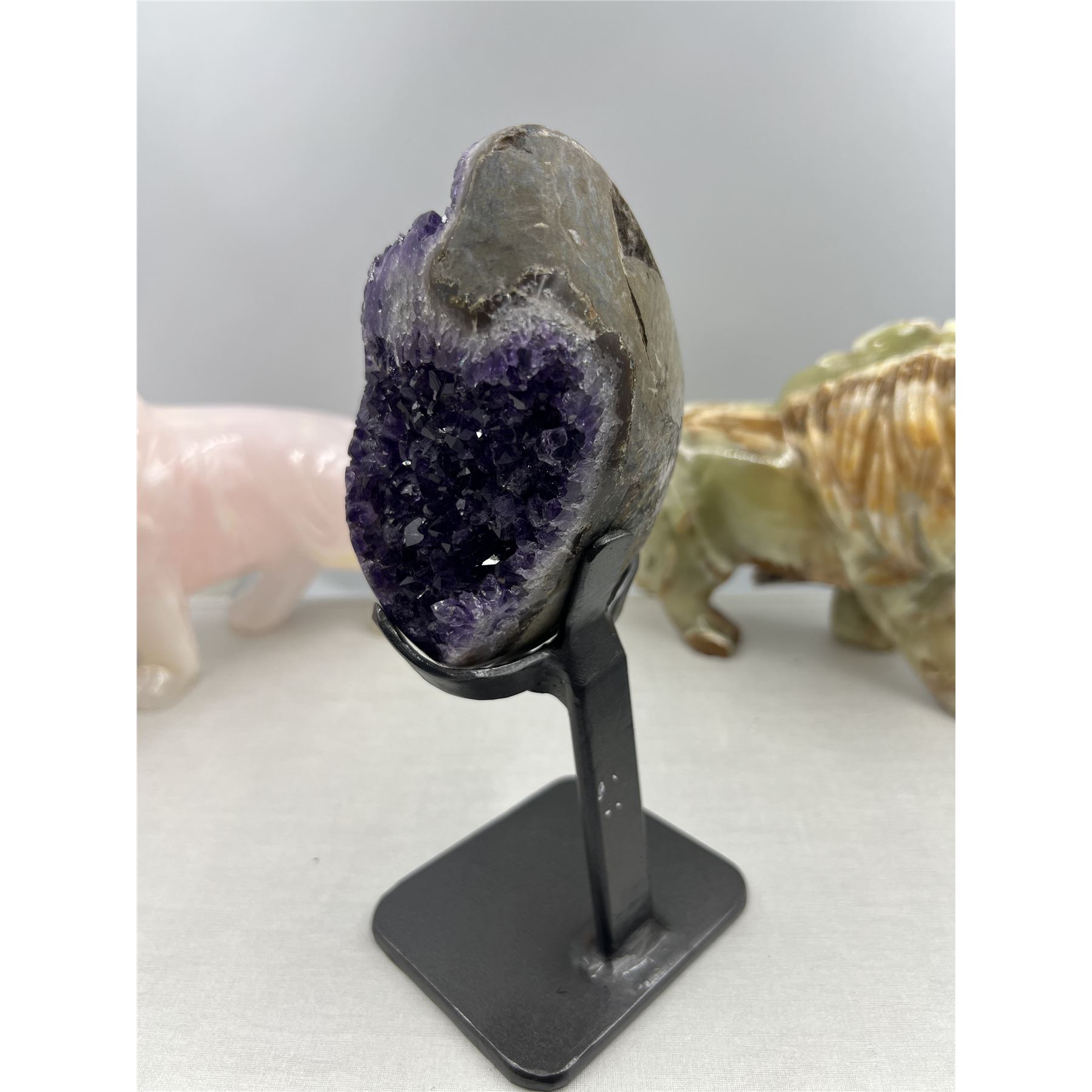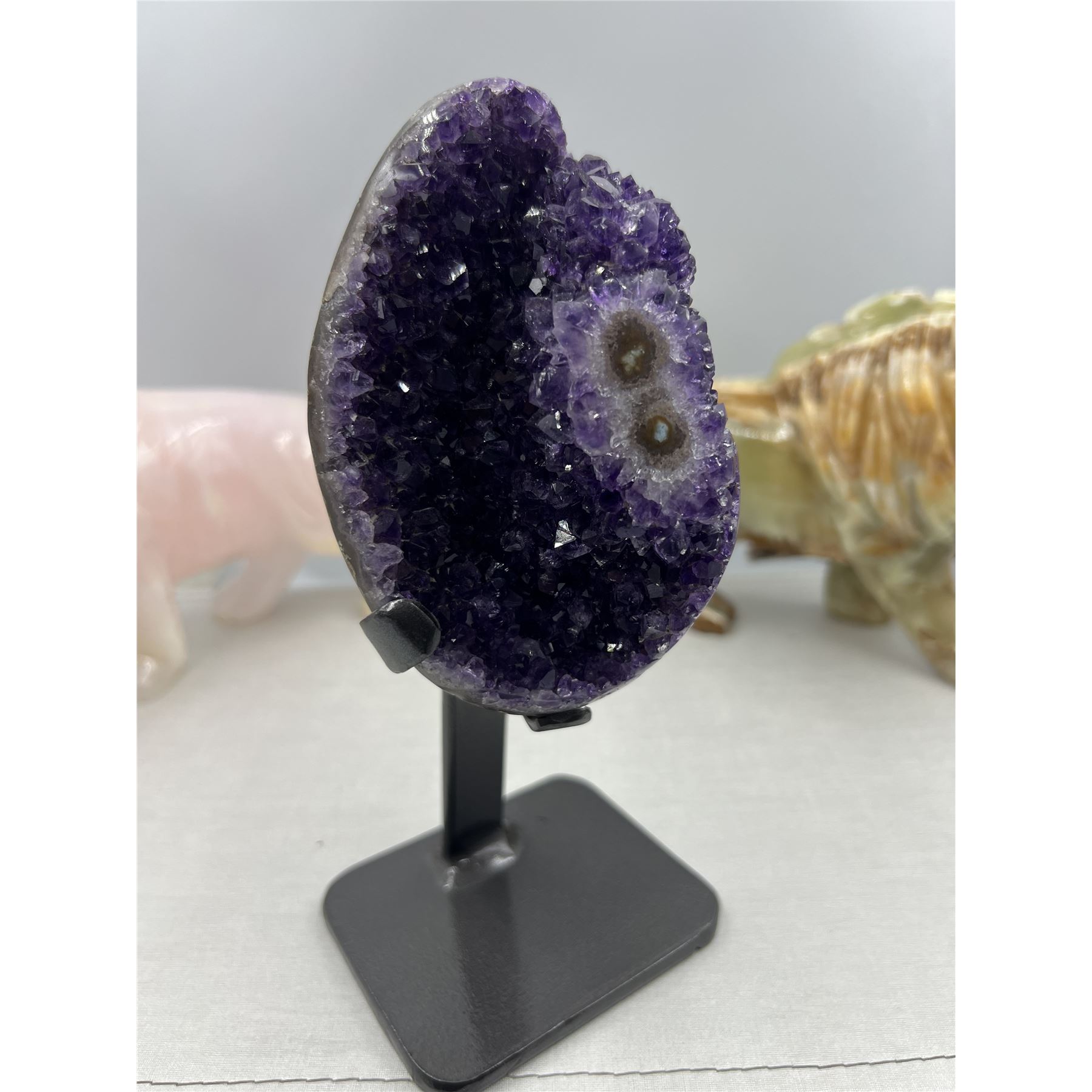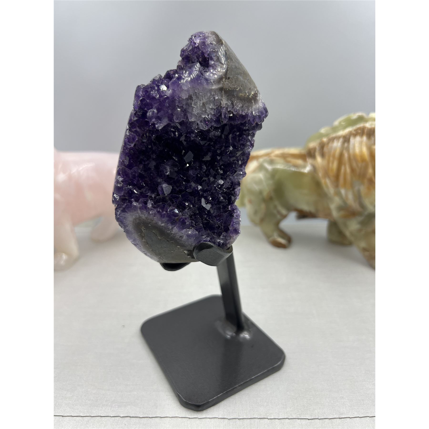 7.5 X 3 INCH HIGH GRADE URUGYAN AMETHYST CLUSTER ON METAL STAND