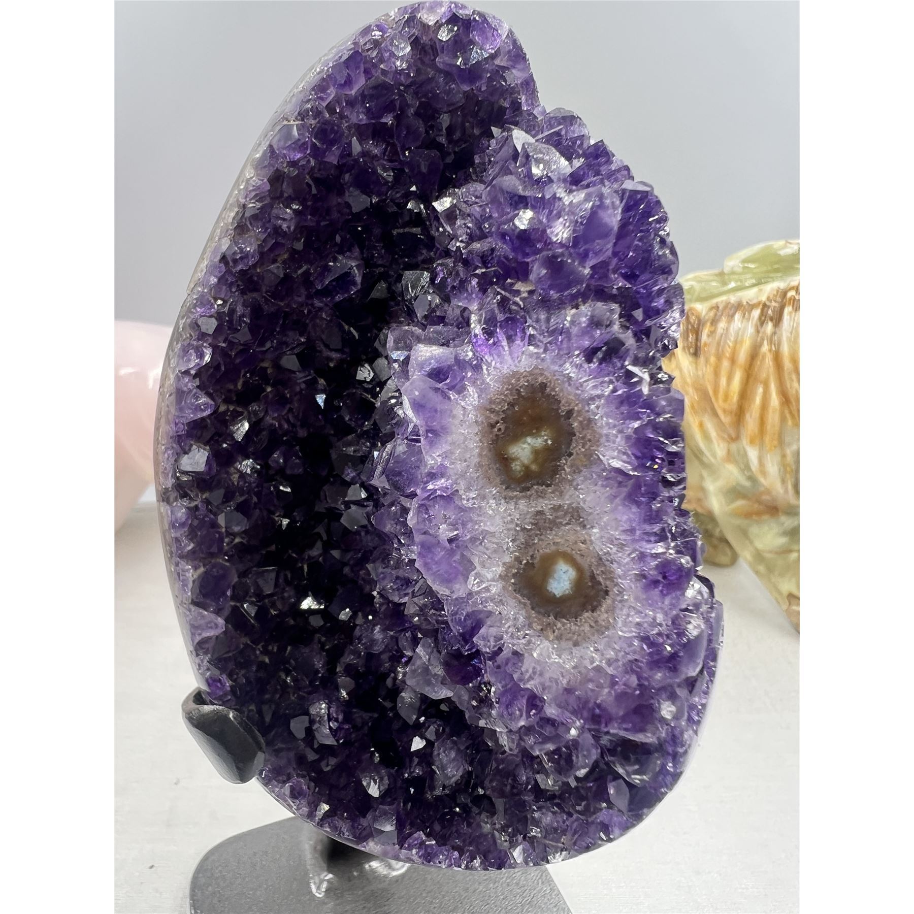 7.5 X 3 INCH HIGH GRADE URUGYAN AMETHYST CLUSTER ON METAL STAND