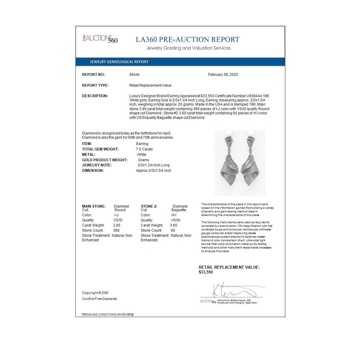 All sales are final, placing a bid is a legally binding obligation. All lots are sold as is, where is, with all the faults, imperfections, omissions and errors in the written description, estimates, appraisals, graphics and photography. USJL is not responsible for any errors or omissions in the description, graphics or photography provided or in the bidding software. Due diligence to verify the condition and description of a lot is the sole responsibility of the Bidder prior to placing any bid. Returns may only be made with the advance written authorization of USJL and are in USJL's sole discretion to approve. To request a return you must provide a written request fully explaining the basis for the return no later than 4 days after your receipt of the lot. Under no circumstances will any amounts other than the winning bid amount be refunded. A restocking charge of 19% of the full invoice amount may apply in USJL 's sole discretion. Any allowed returns must be received in exactly the same condition as when originally shipped to Buyer, or they will be returned to buyer at Buyer's cost. Any unauthorized returns will be refused. DELIVERY REFUSAL OF ITEMS SHIPPED BY US JEWELRY LIQUIDATION TO THE BIDDER CONSTITUTES AN UNAUTHORIZED RETURN IN DIRECT VIOLATION OF THESE GENERAL TERMS AND CONDITIONS.