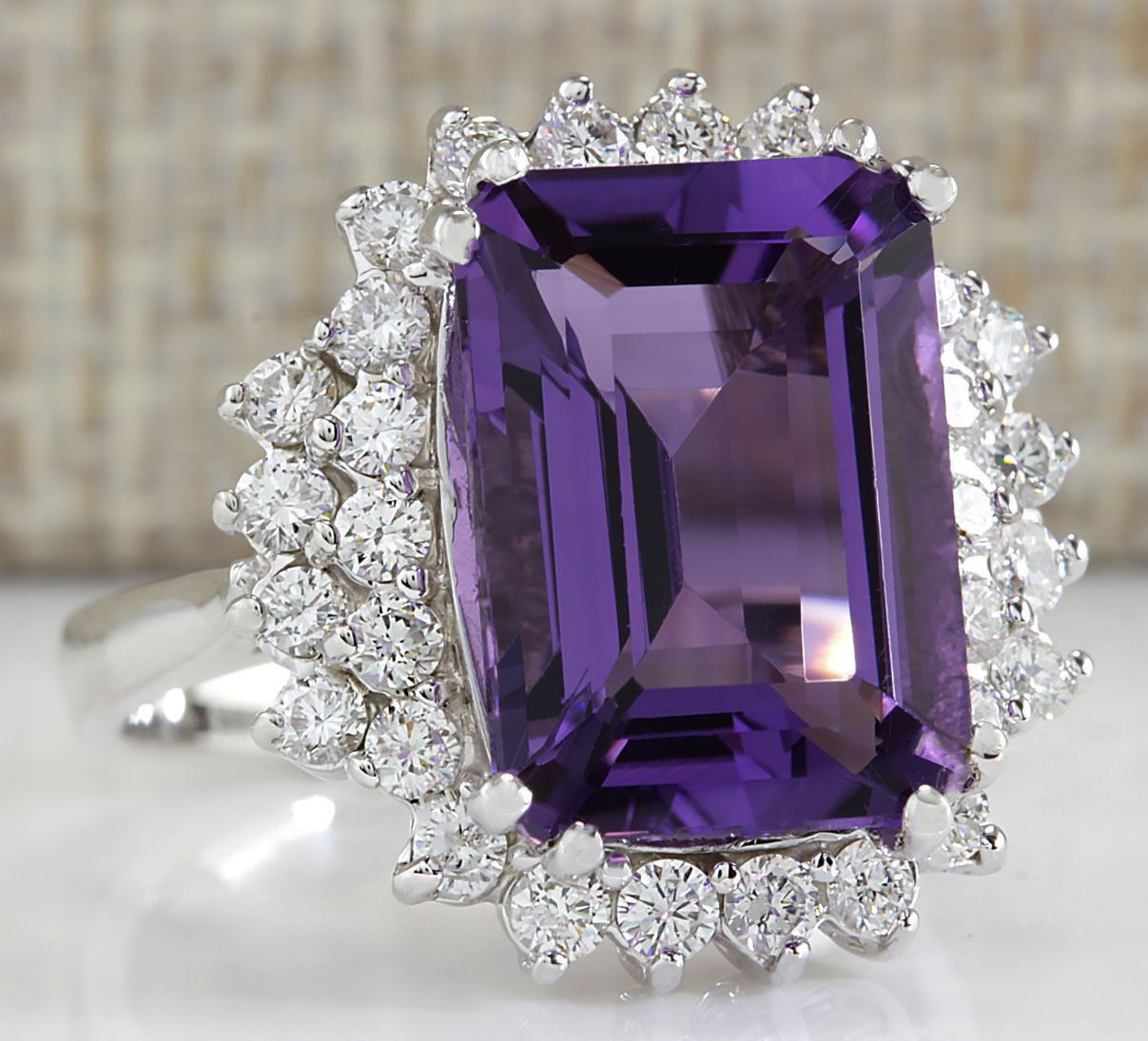 7.50 CTW Natural Amethyst And Diamond Ring In 14K White Gold