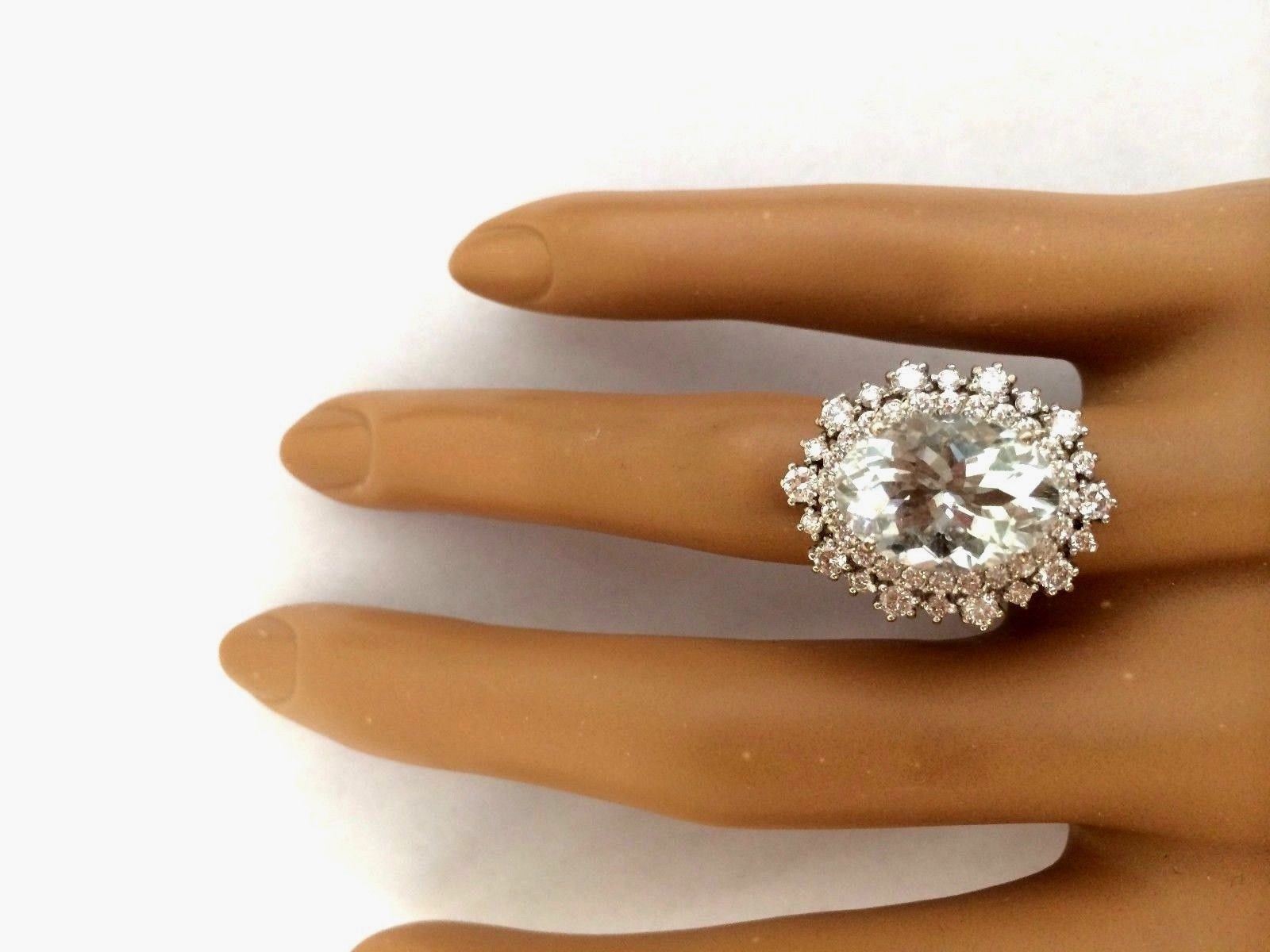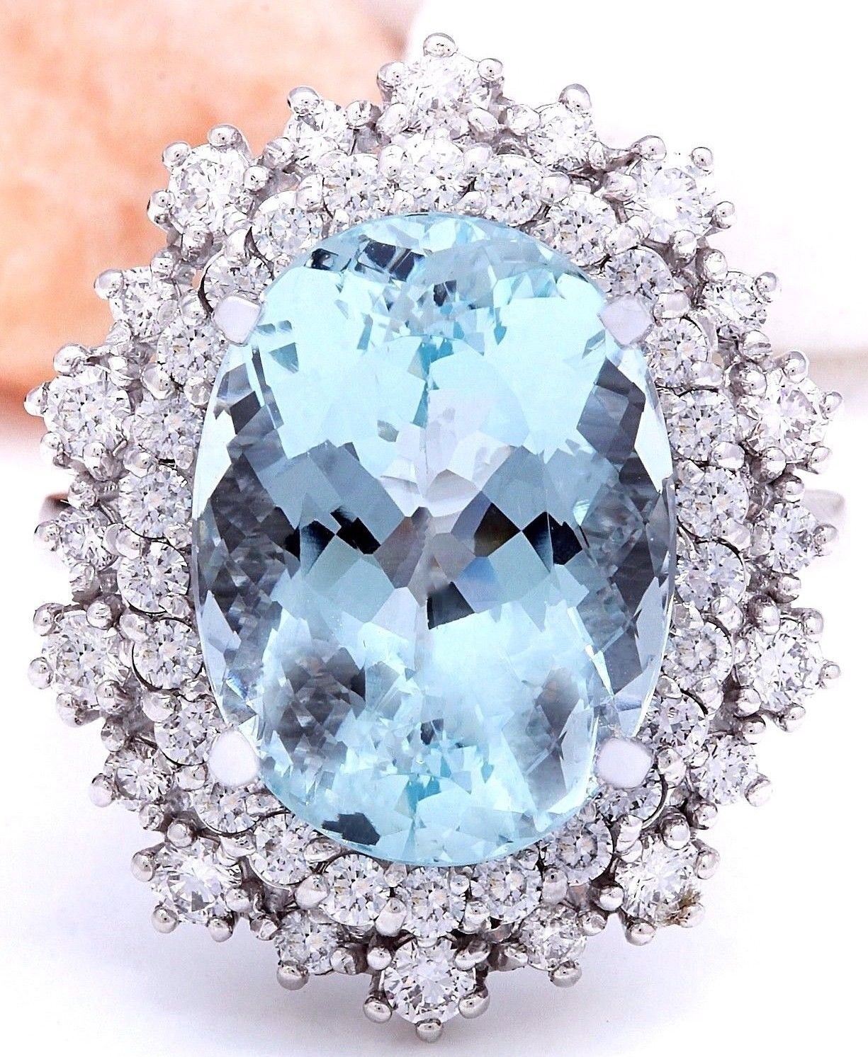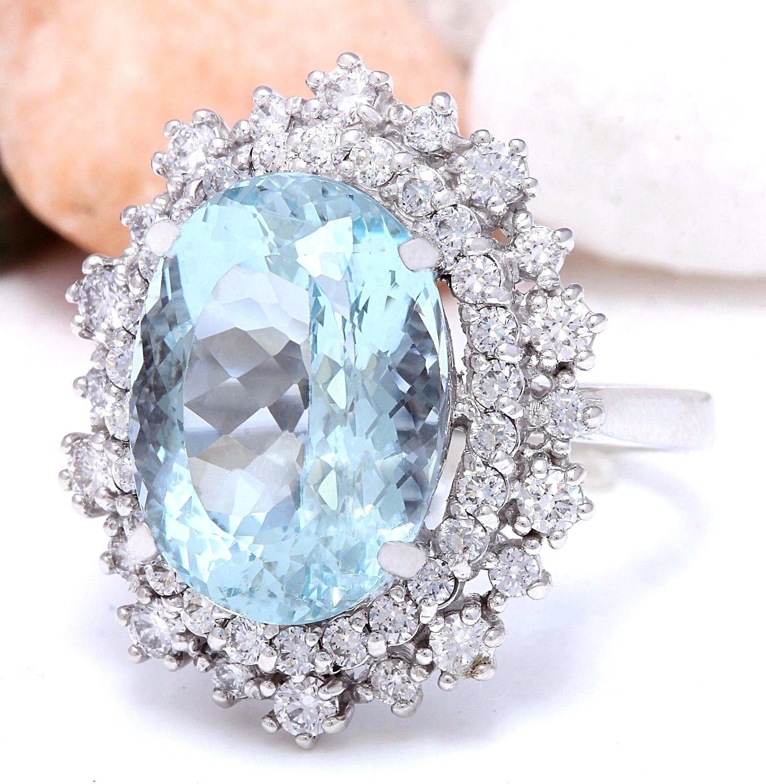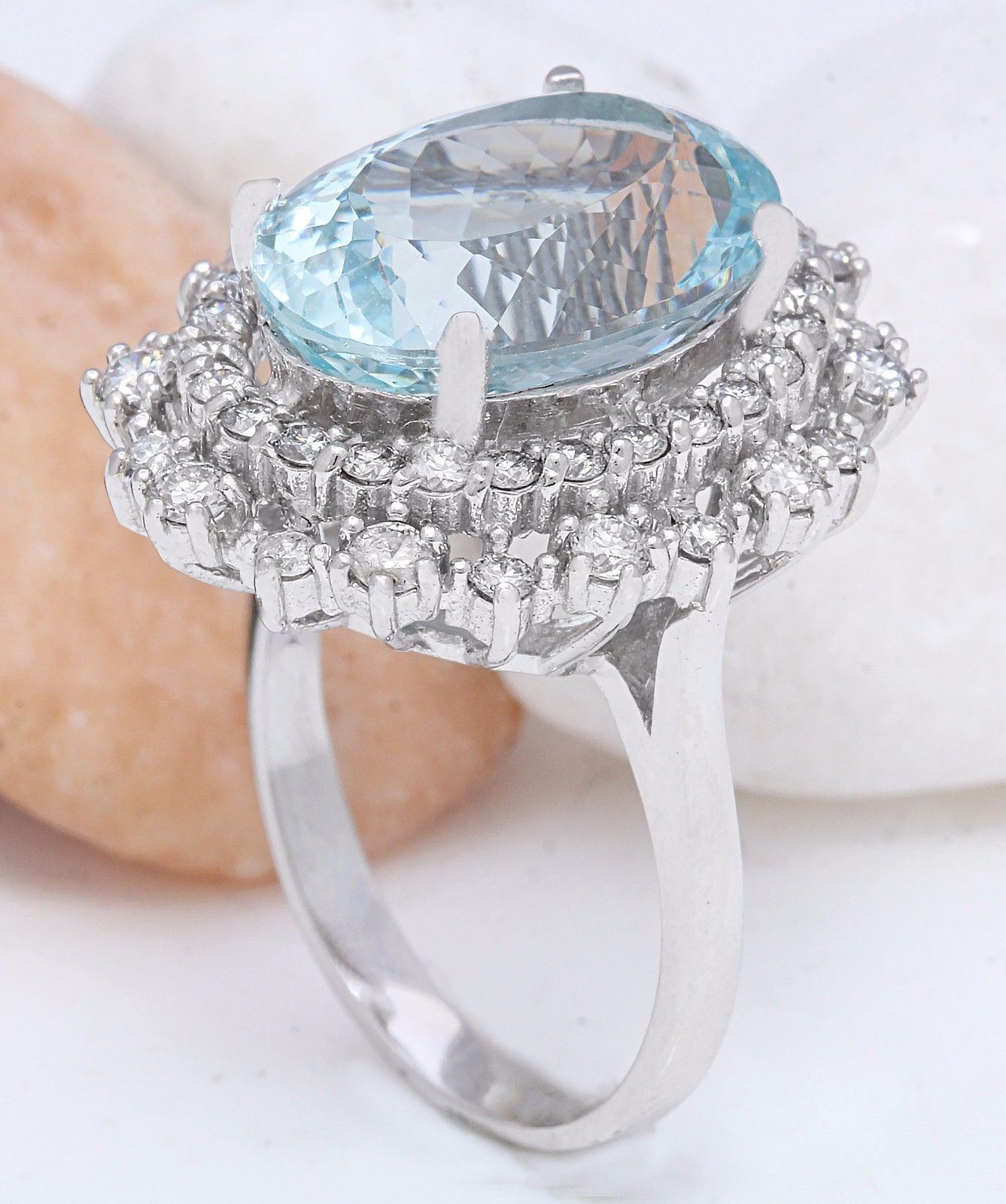 7.50 Carat Natural Aquamarine 14K Solid White Gold Diamond Ring