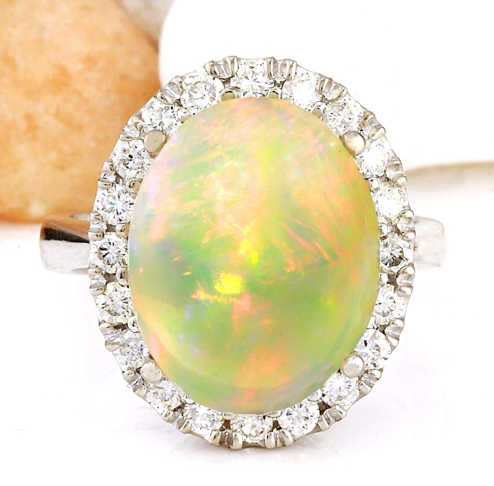7.50 Carat Natural Opal 18K Solid White Gold Diamond Ring