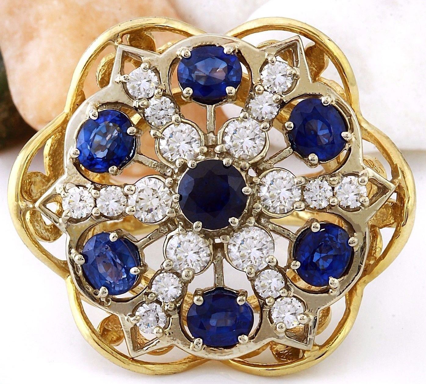 7.50 CTW Natural Sapphire 18K Solid Yellow Gold Diamond Ring