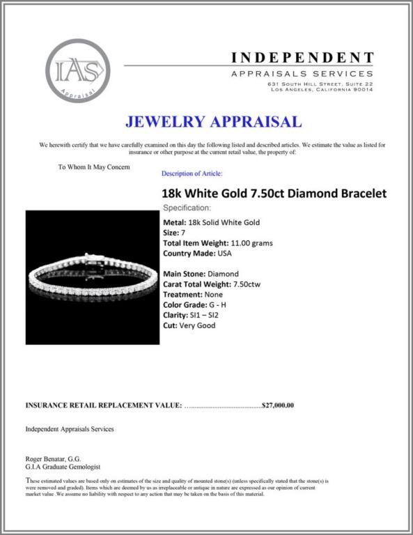 Regarding Appraised Jewelry and Loose Stones - Auctionfarm sends them out to a third party for Retail Replacement Value Appraisals, which are the most common. These types of evaluations are written for insurance needs. This would be the cost to replace the jewelry with an item of equal quality and kind, considered to be the current market price or the replacement value. This type of appraisal is done to protect you in the event of damage or loss of a valuable item. Our appraisals are conducted by independent 3rd Party appraisal firms that utilizes Certified GIA Gemologist. Appraisals should be used for verification of gemstone and/or metal weight, size, and grade only, not actual value. Appraisal value should be considered for insurance purposes only, not actual value, as price varies greatly from retail locations thru out the world. Items should not be purchased with the expectation to resell for appraisal price, or for profit.