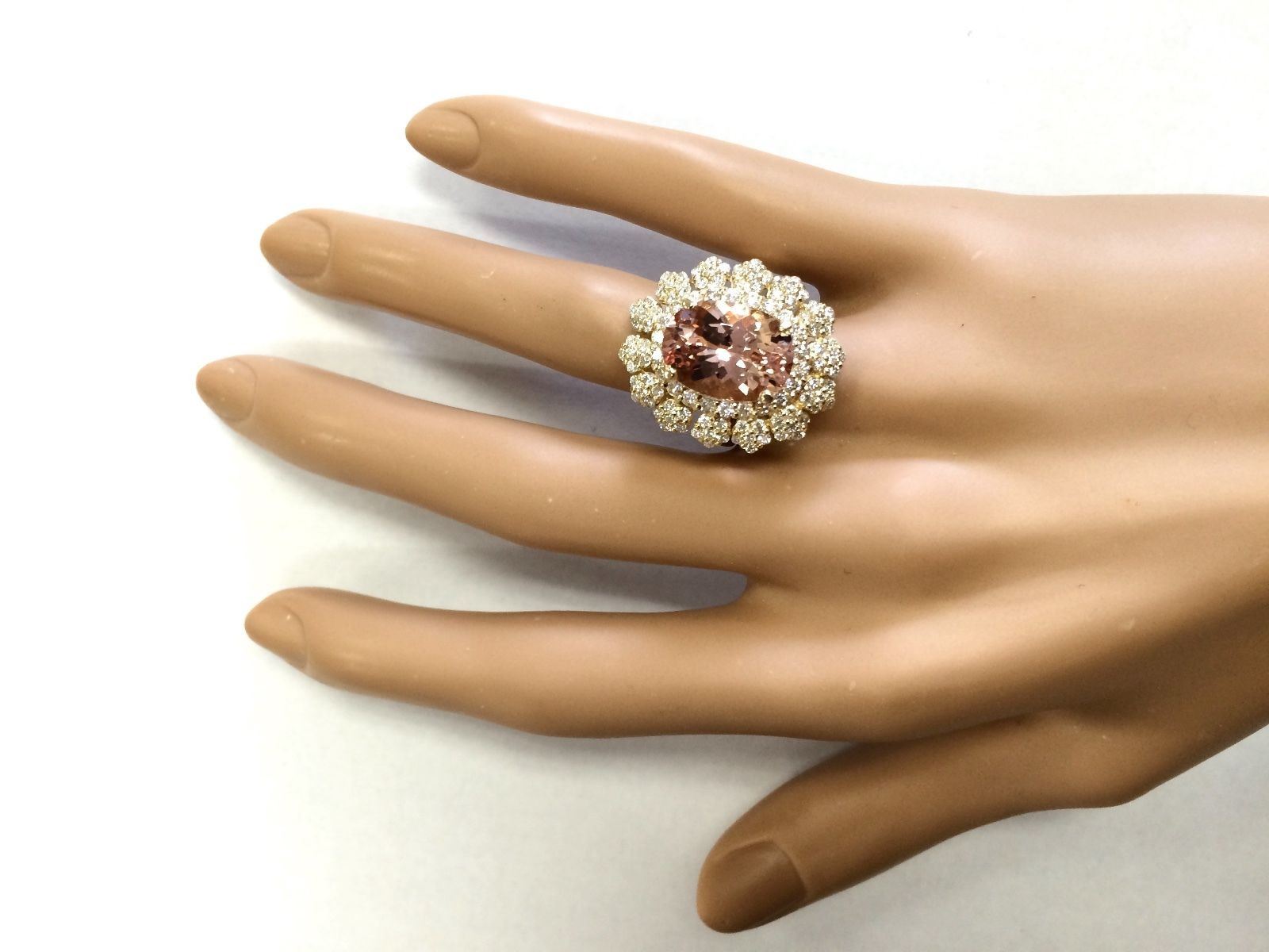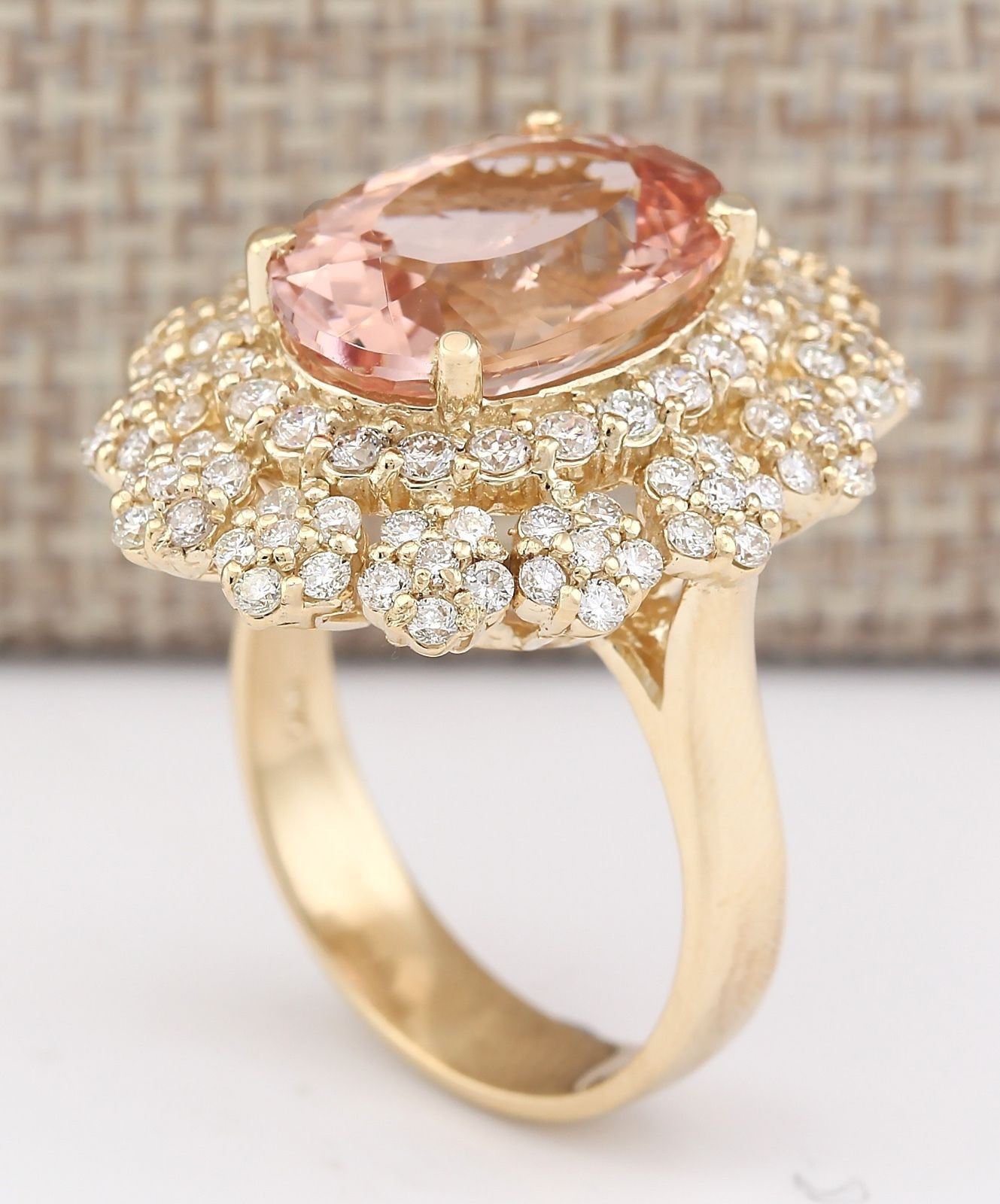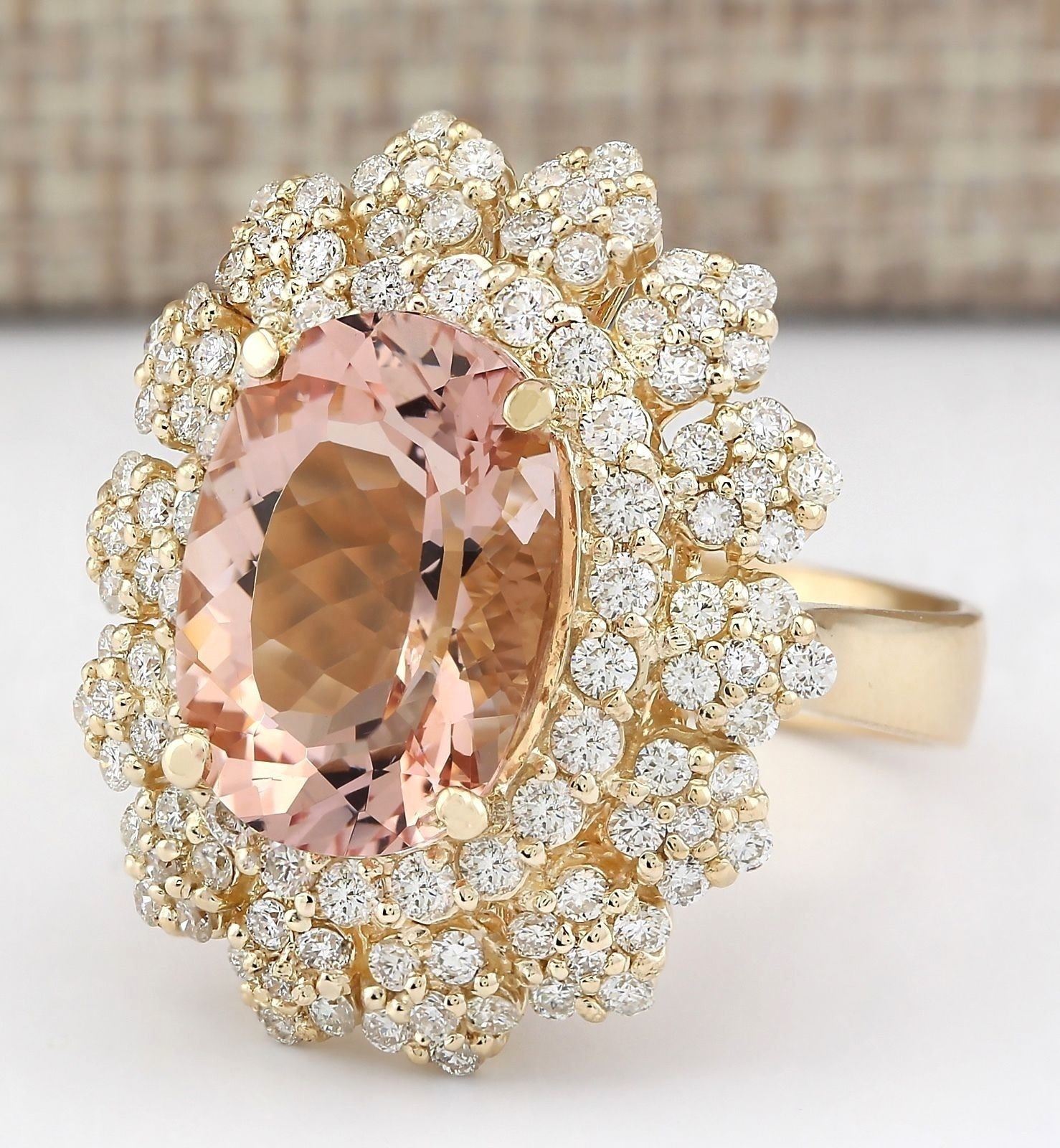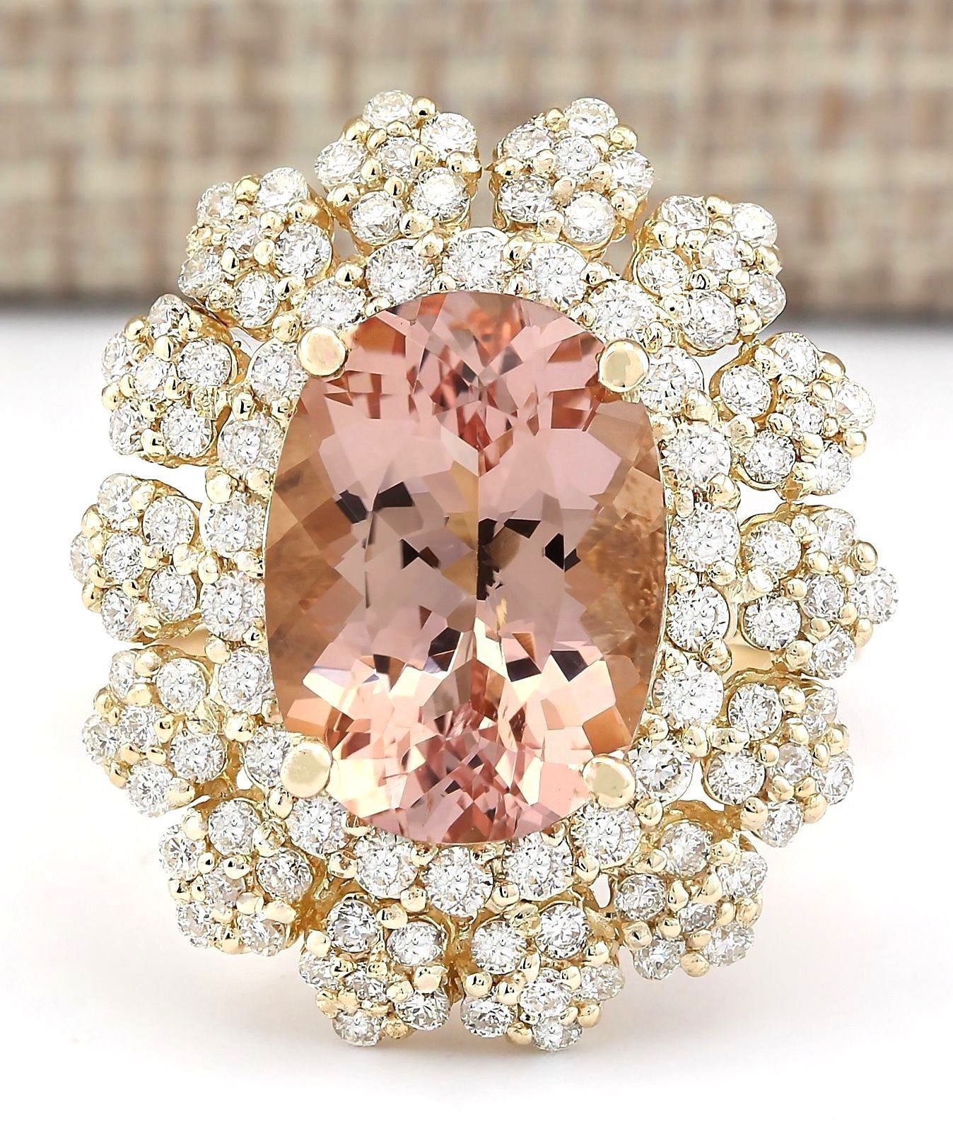 7.51 CTW Natural Morganite And Diamond Ring In 14k Solid Yellow Gold