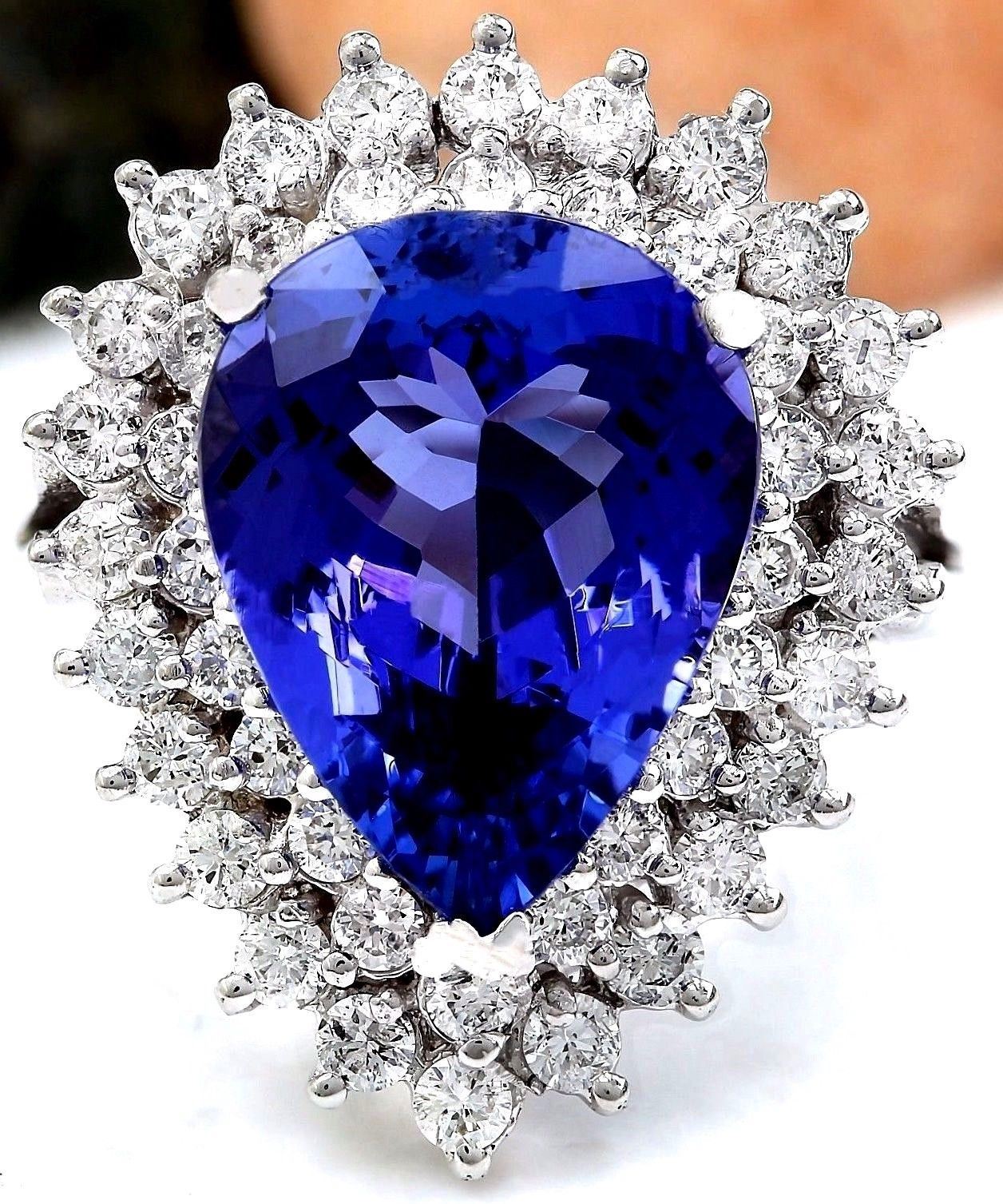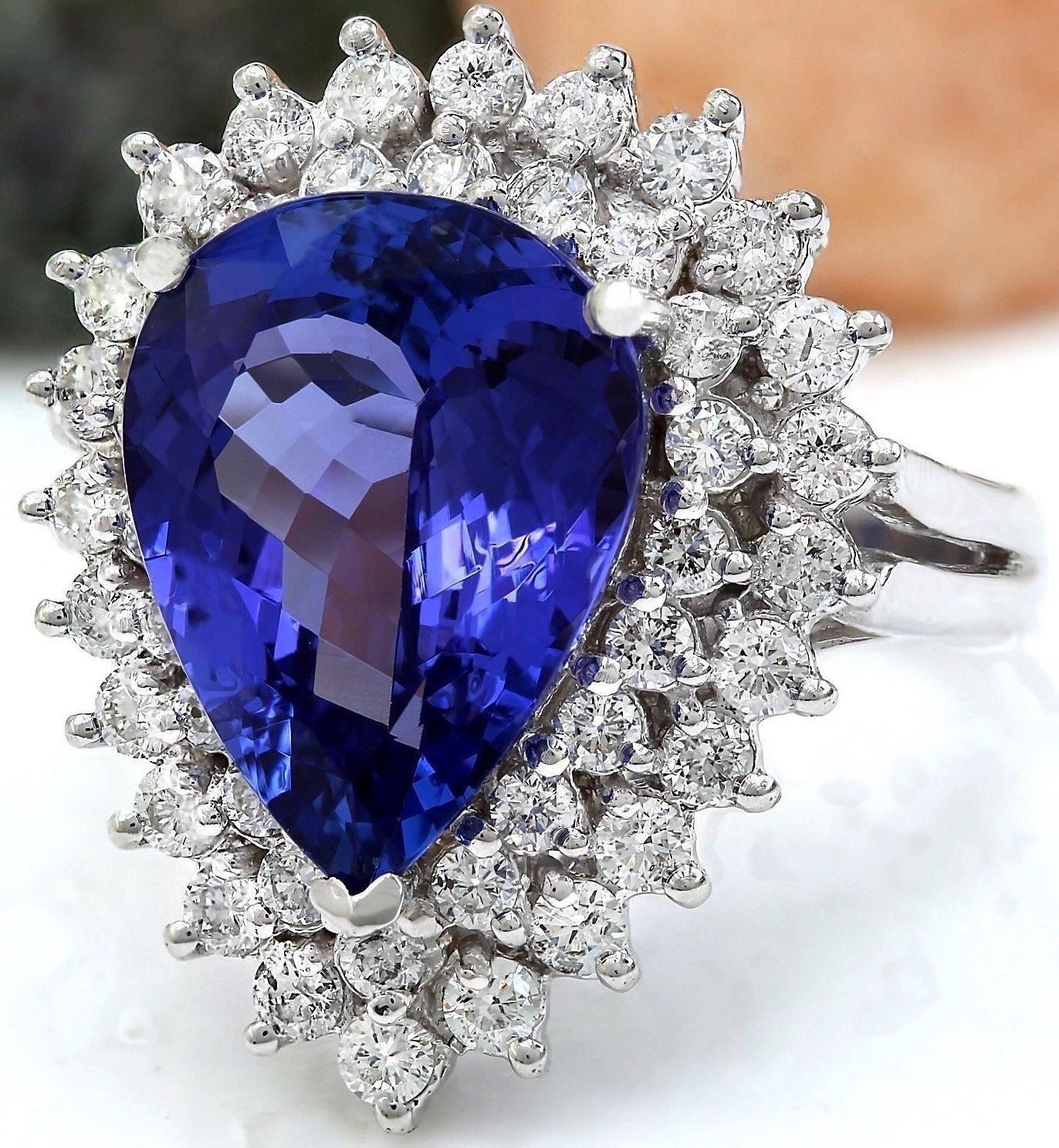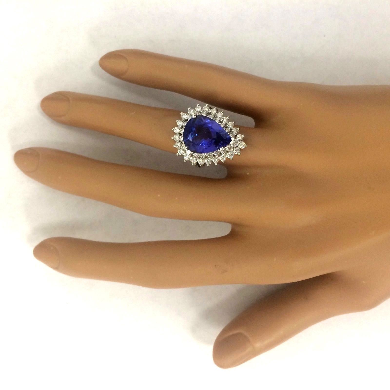 7.51 Carat Natural Tanzanite 14K Solid White Gold Diamond Ring