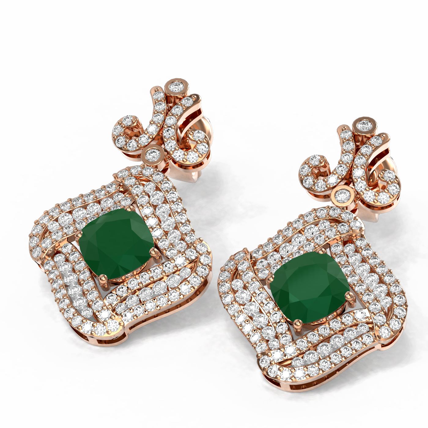 SKU: 54234 ---- 7.51 ctw Emerald & Diamond Earrings 18K Rose Gold
