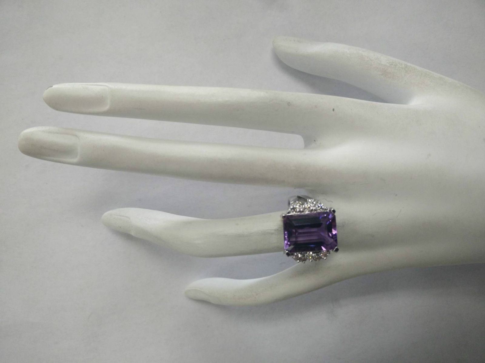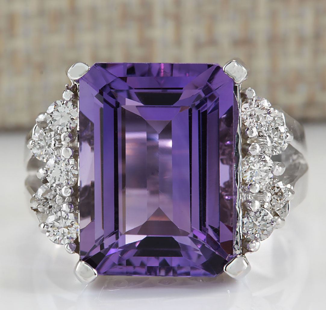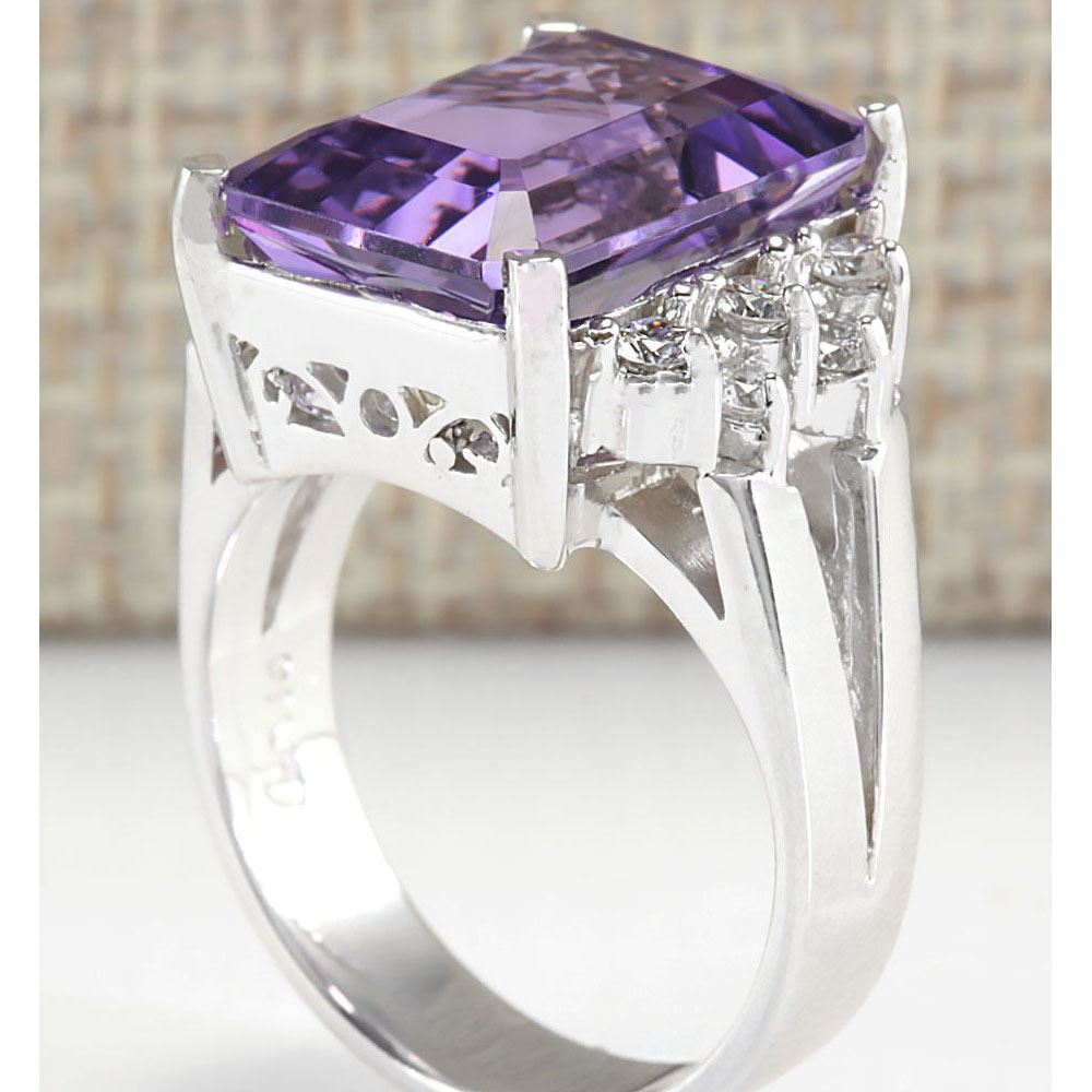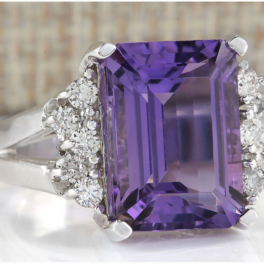 7.53 CTW Natural Amethyst And Diamond Ring In 14K White Gold